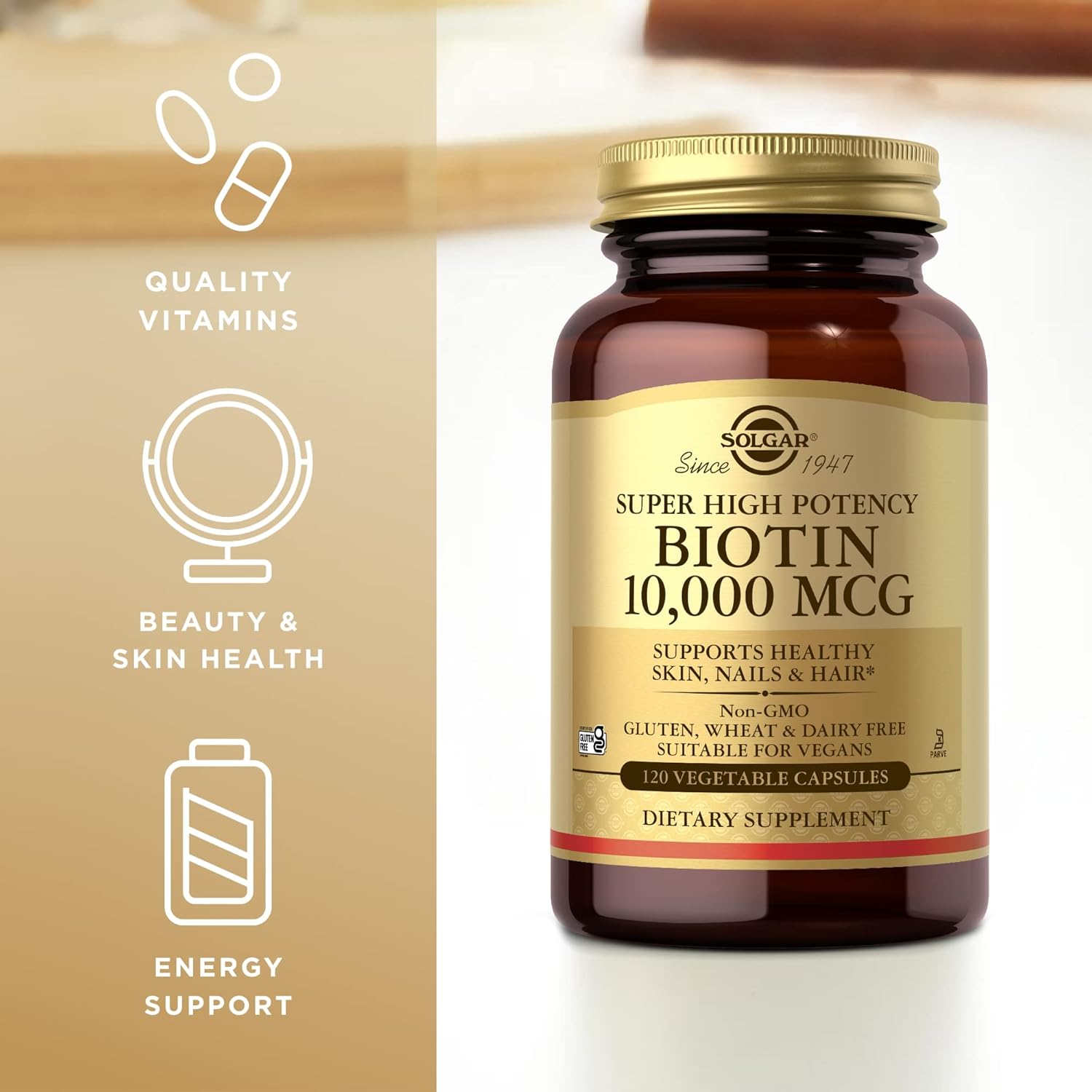 Solgar Super High Potency Biotin 10,000 Mcg - 120 Vegetable Capsules, Pack Of 2 - Supports Healthy Skin, Nails & Hair - Non-Gmo, Vegan, Gluten & Dairy Free - 240 Total Servings