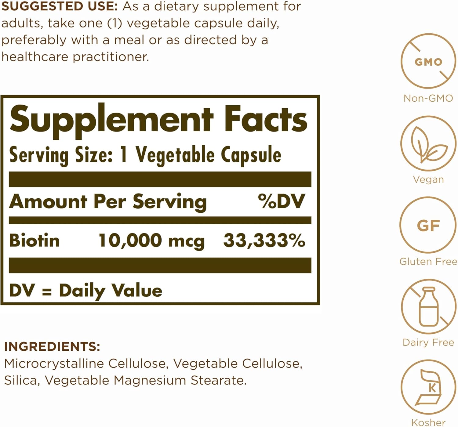 Gluten, Wheat & Dairy Free; Solgar Biotin Is Non-Gmo, Vegan, Kosher, And Free Of: Gluten, Wheat, Dairy, Soy, Yeast, Sugar, Sodium, Artificial Flavor, Sweetener, Preservatives, And Color; Suitable For Vegetarians