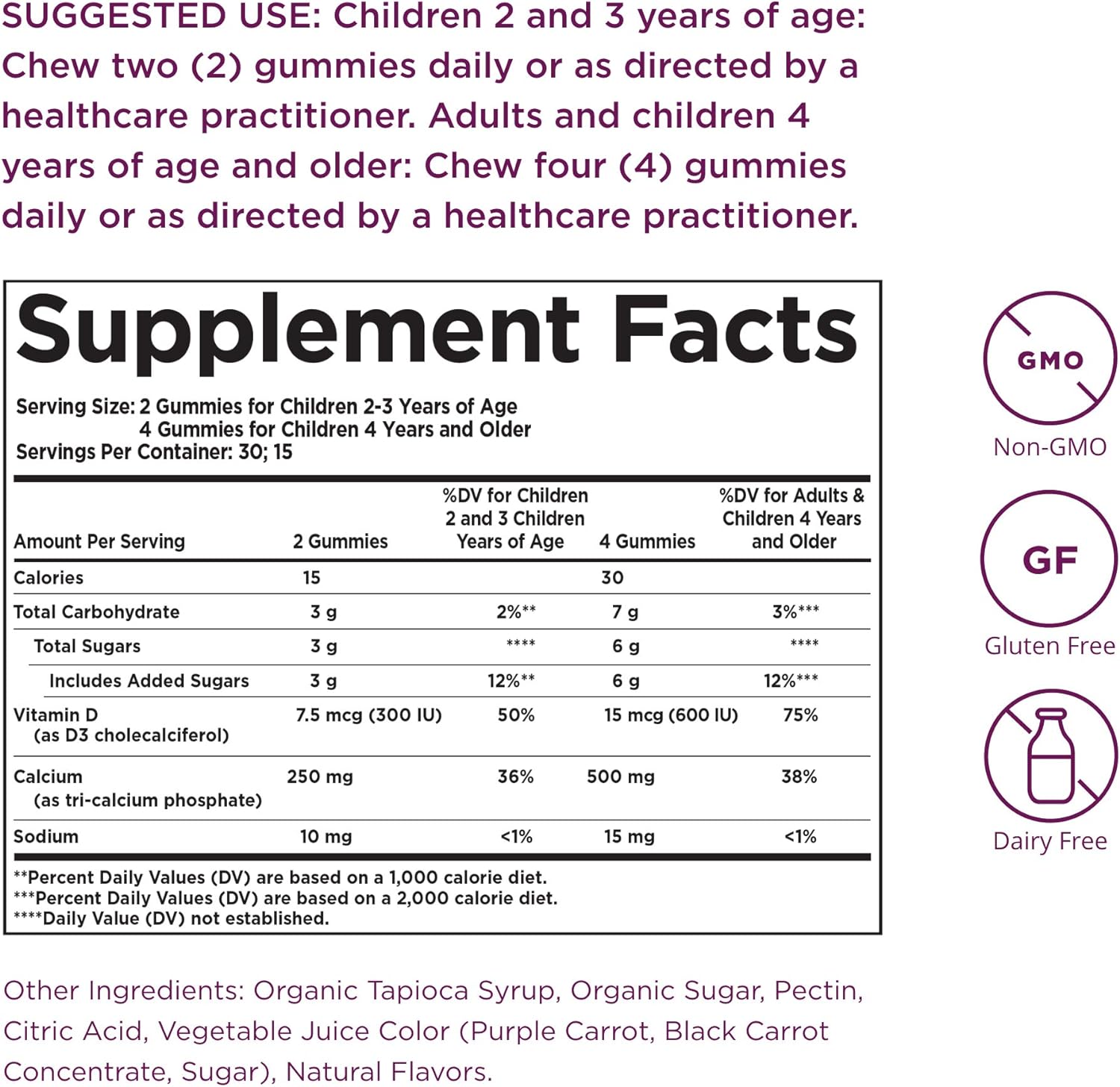 2 >Promotes Healthy Bones & Teeth; These gummy calcium chews for kids provide the pediatrician-recommended daily dose of Vitamin D3; D3 assists in calcium absorption and supports immune system health; Can be taken with other Solgar U-Cubes products