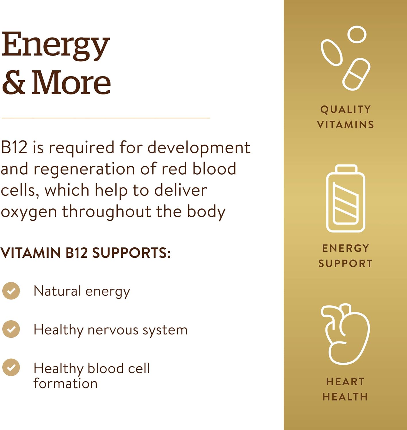 Energy Metabolism; Vitamin B12 Is Part Of A Group Of Essential Nutrients Known As The B Complex; It Supports Energy Metabolism And Promotes A Healthy Nervous System