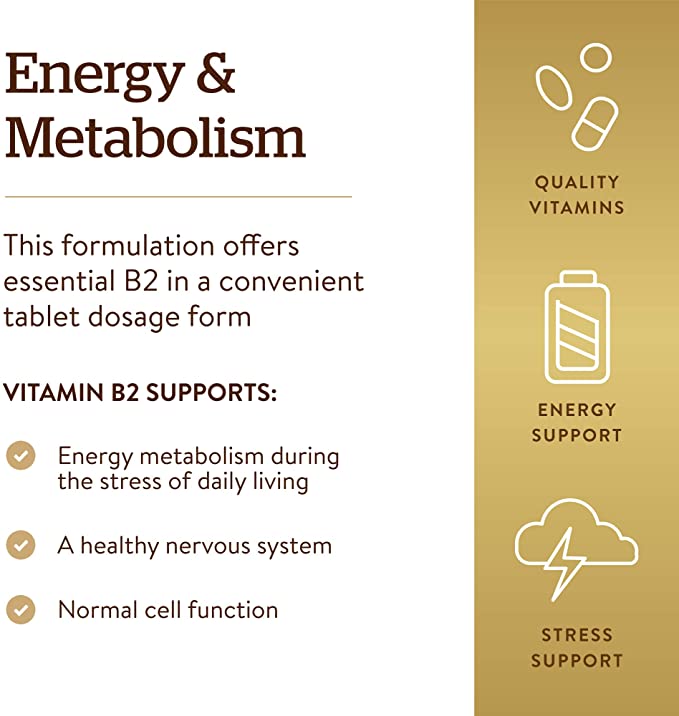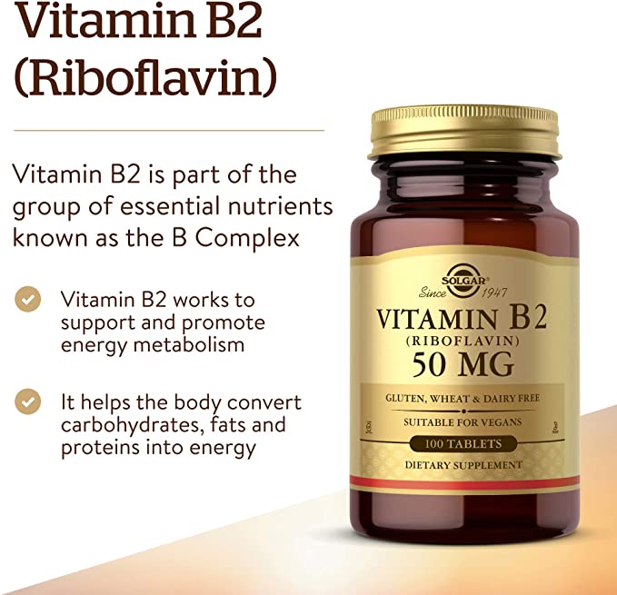 Solgar Vitamin B2 (Riboflavin) 50 Mg, 100 Tablets - Energy Metabolism, Healthy Nervous System - Vegan, Gluten Free, Dairy Free, Kosher - 100 Servings
