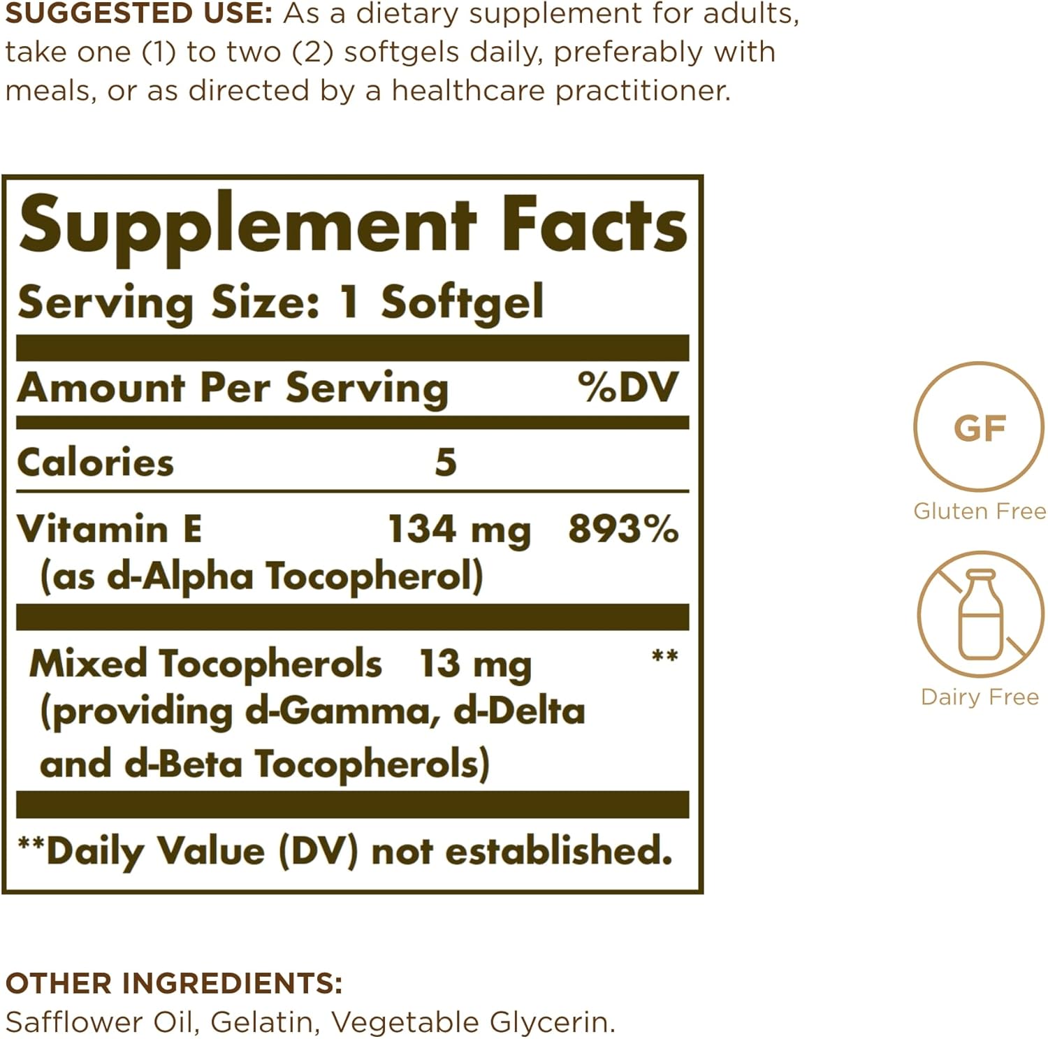Solgar Vitamin E 200 Iu - 100 Softgels - Natural Antioxidant, Immune System Support - Gluten Free, Dairy Free - 100 Servings