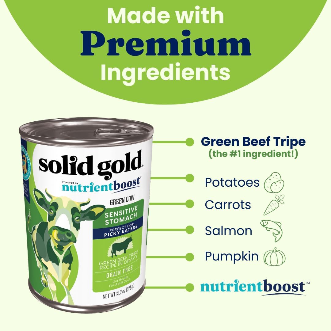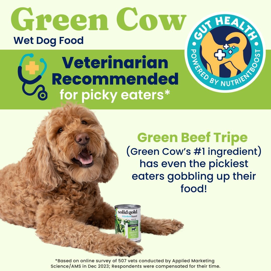 Solid Gold Green Cow Wet Dog Food Mix In For Adult & Senior Dogs For Picky Eaters - Canned Dog Food Additive With Beef Tripe For Healthy Digestion & Sensitive Stomach - 6 Pack/13.2 Oz Cans