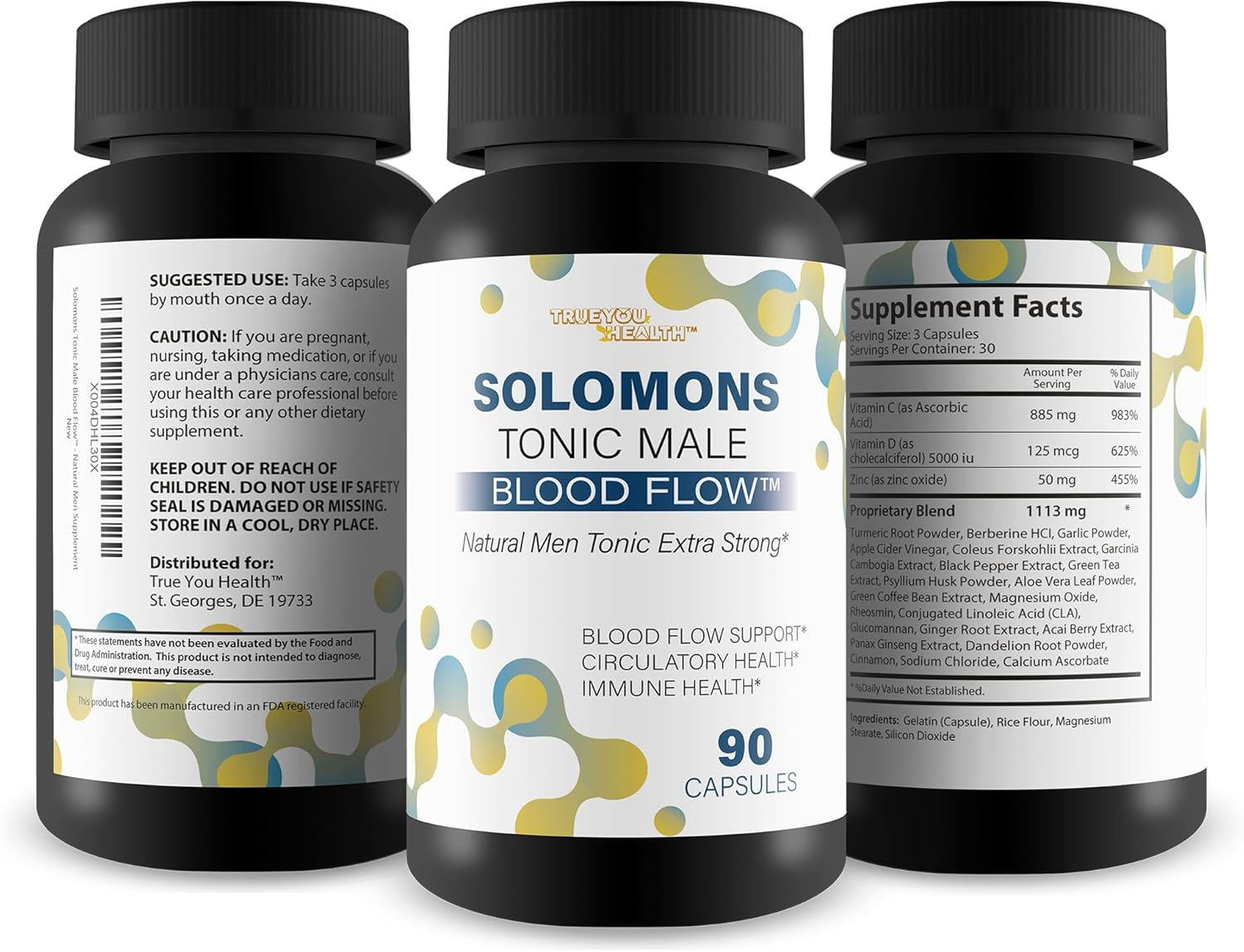 Boosts Whole Body Circulation and Vitality - The advanced blood flow support formula, in Solomons Tonic supplement, promotes healthy blood flow throughout the body, helping deliver essential nutrients and oxygen to muscles, organs, and tissues. These blood flow capsules help keep your body functioning optimally and feeling energized