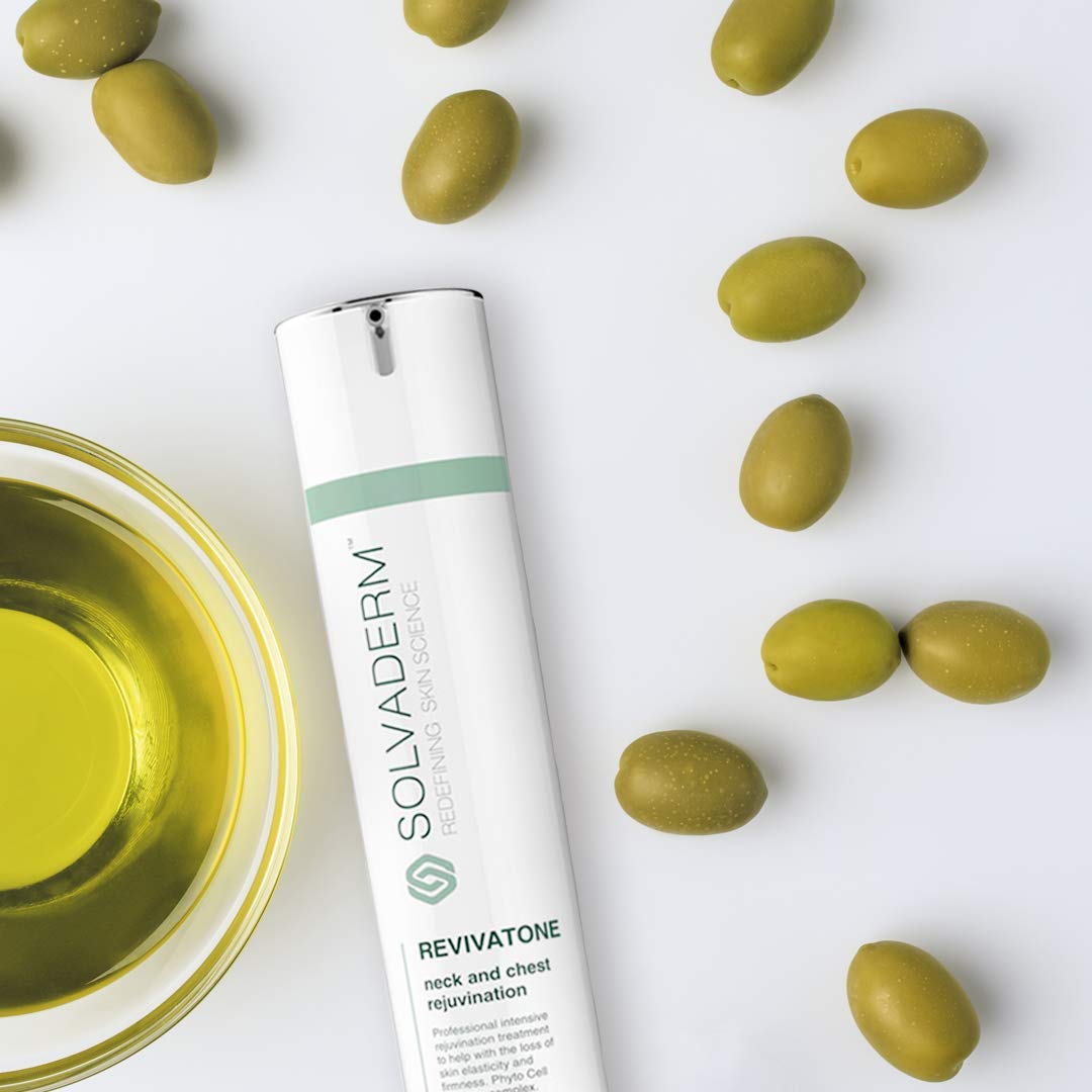 ABOUT THE PRODUCT: 1 > Revivatone Penetrates Deeply To Repair Damage And Reconstruct The Skin Matrix, Firming And Lifting The Neck And Chest Area 2 > Strengthens Elastin Fibers And Promotes Collagen Production, Tightening And Smoothing The Skin Surface To Eliminate Sagging 3 > Restores Density To Thin Skin, Making It Able To Withstand Further DamageSolvaderm Revivatone Intensive Neck and Chest Repair Complex with a Dual-Peptide Blend, Repairs Damage and Enhances Resilience, Tightening and Firming Loose Skin