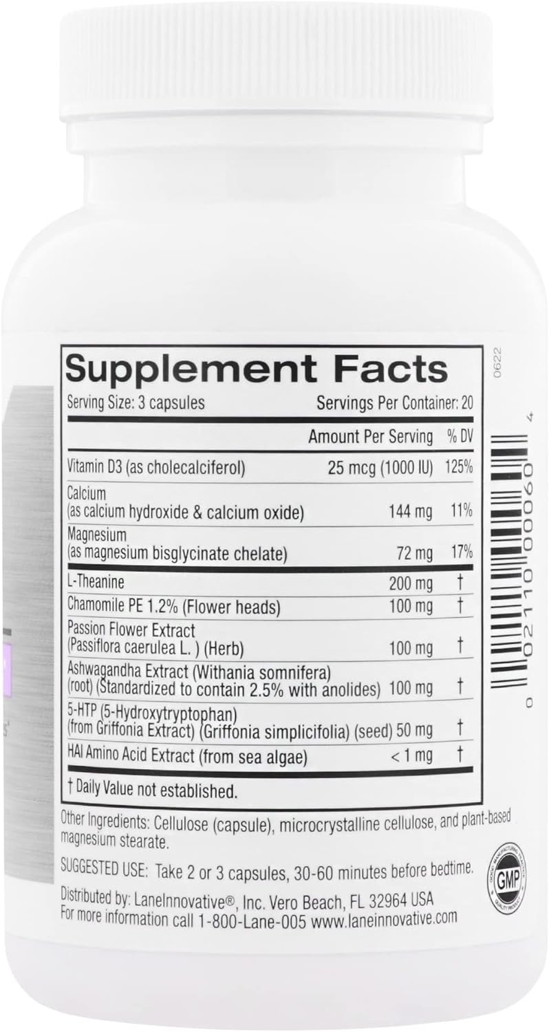 GOOD SLEEP IS IMPORTANT: Getting enough sleep is not only vital to our ability to function mentally throughout the day, it's crucial to our bodies' overall function. Good sleep supports immunity, concentration, & lasting daily energy10HELPS PROMOTE BALANCE: Our bodies operate best when our sleep cycle, diet, & exercise regimens are healthy & consistent. This is also known as having a balanced biorhythm. Somni helps initiate this cycle by helping promote a full night’s sleep10RICH IN VITAMINS: Somni contains L-Theanine, which is used to help promote relaxation, as well as magnesium bisglycinate, a highly bioavailable mineral that is used to help regulate sleep cycles, among an array of other health benefits10A NATURAL SOLUTION: This sleep aid supplement helps promote restful sleep every night & natural energy every day, unlike other sleep aids that only address temporary sleeplessness & contribute to drowsiness & lethargy throughout the day10THE LANE INNOVATIVE DIFFERENCE: Our key ingredients are produced in countries with advanced food technologies & regulatory oversight. We continuously test for label claim potency, pathogens, & heavy metals1010