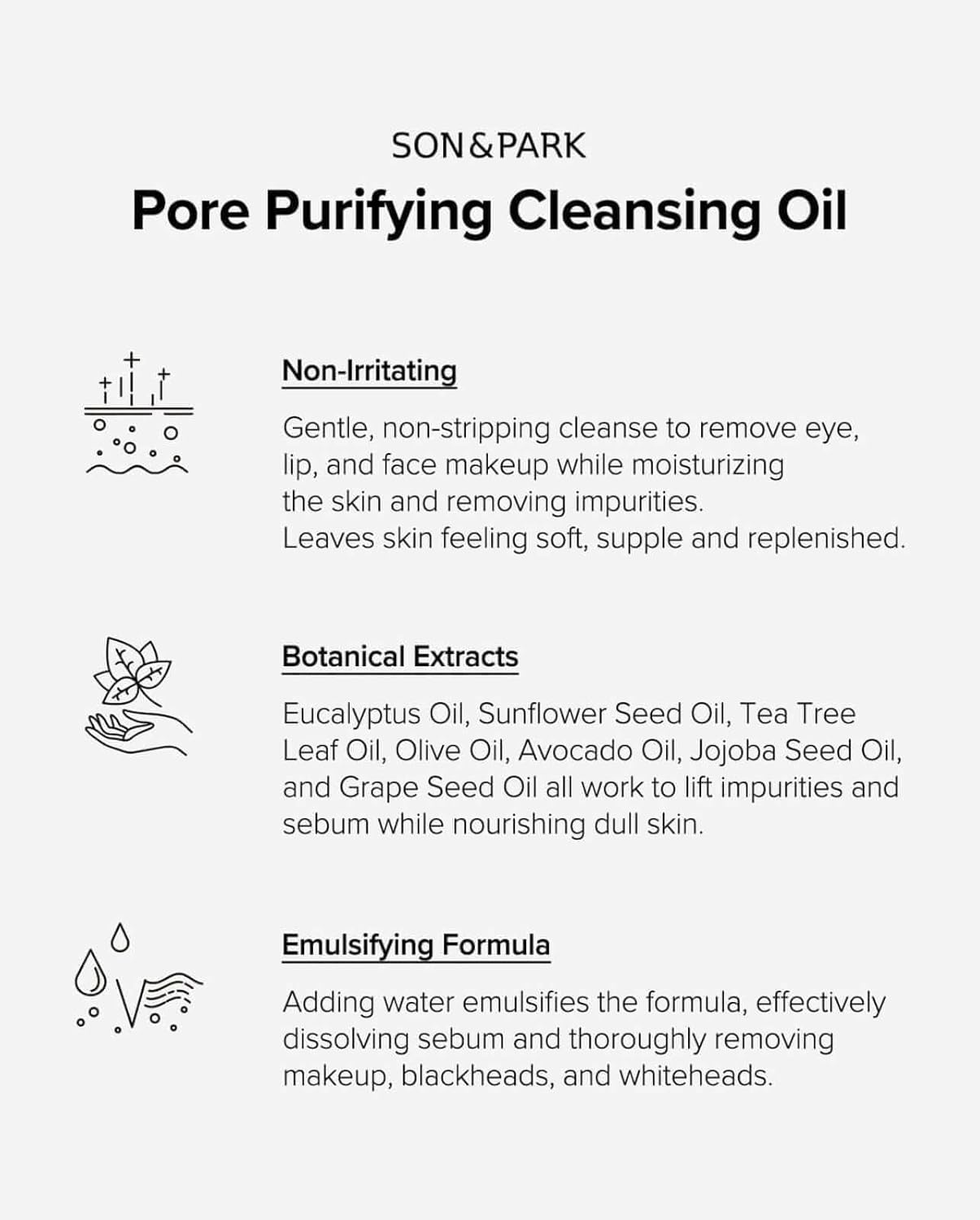 SON&PARK Cleansing Oil for Pore Purifying & Control Mild & Deep Facial Cleanser, Blackhead Melting Daily Makeup Removal with Jojoba, Avocado, Olive, Tea Tree Leaf Oil 6.76 fl oz(200ml) Made In the USA : Beauty & Personal Care