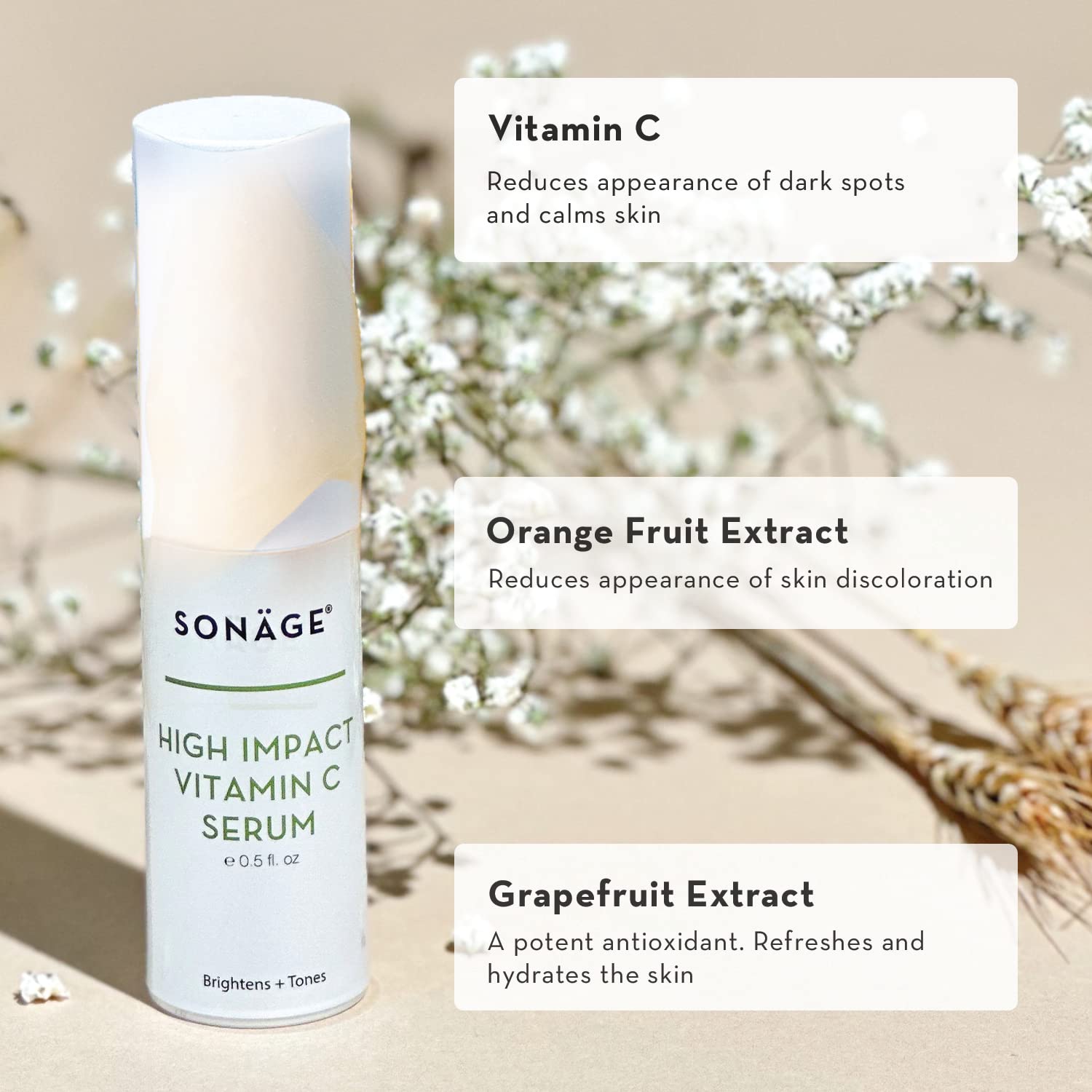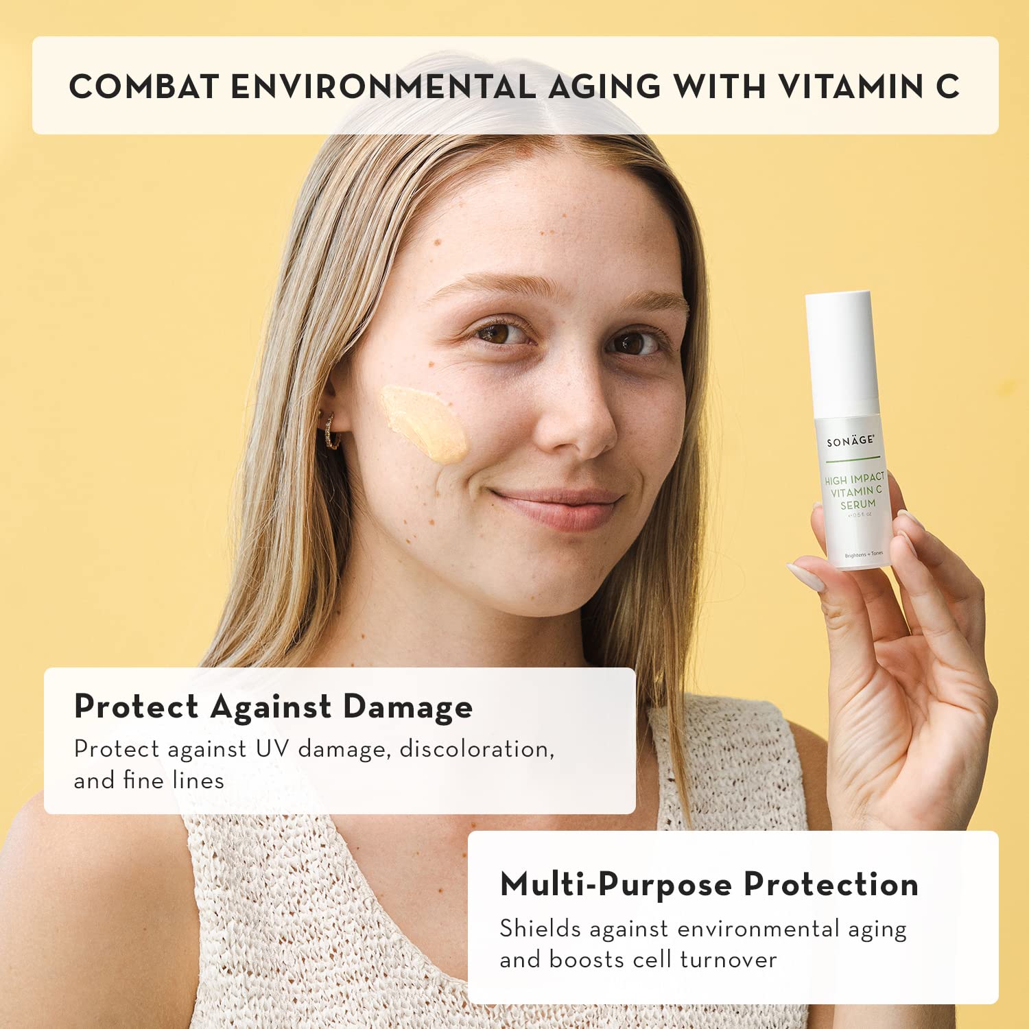 Sonage High Impact Vitamin C Serum | Brightening and Anti Aging Serum with Pure Vitamin C, Hyaluronic Acid, Vitamin E | Reduces Appearance of Dark Spots Fine Lines, Wrinkles