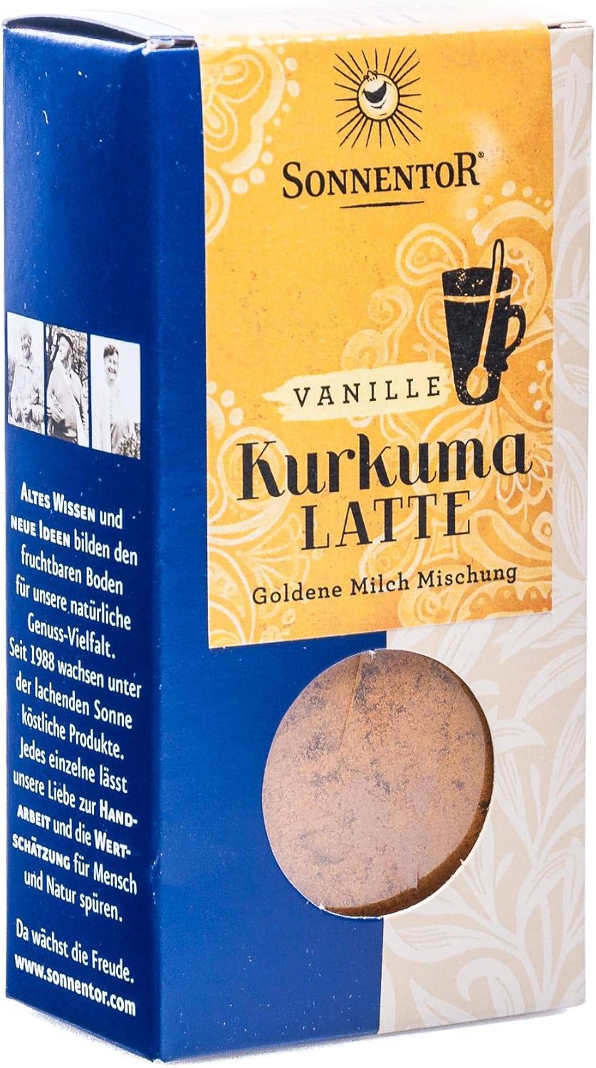 Product Description Connector Organic Turmeric Vanilla Latte or "Golden Milk" is yellow, soothing and is prepared in warm milk. The yellow-orange powder is fine, dry and smells pleasantly spicy. The special interaction with sweet vanilla cheers up the mind. Just stir into milk and enjoy this delicious warming drink. Available in 60 g box. Ingredients 100% Organic: Turmeric 54% Cinnamon Ceylon Cocoa Ginger Vanilla 5% Liqourice Pepper Black P.when('A').execute(function(A) { A.on('a:expander:toggle_description:toggle:collapse', function(data) { window.scroll(0, data.expander.$expander[0].offsetTop-100); }); }); Directions 1 tsp turmeric latte mixture (approx. Stir 2 g) in 250 ml plant drink, warm up and sweet. Preparation according to Ayurveda (Golden Milk): stir 1 tsp of turmeric paste* in 250 ml (plants) milk and heat it for 4-5 min. simmer. Refine with 1 tsp of coconut oil and sweet as desired. * Turmeric paste: 1 heaped EL (approx. 8 g) Turmeric latte mixture with 30 ml... Safety Warning Allergy information: No (without analysis): gluten-containing cereals, wheat, cohorasan wheat, spelt, rye, barley, oats, other gluten-containing cereals, crustaceans, eggs, fish, peanut, soy, milk, lactose, shellfruits, almonds, hazelnuts, walnuts, cashew nuts, pecanuts, Brazil nuts, pistachios, macias, macias. Adamia nuts, Celery, mustard, sesame, sulphite, lupine, molluscies. Manufacturer Contact Information Sonnentor Kräuterhandelsgesellschaft m.b; Sprögnitz; 3910 Zwettl See more,Turmeric latte is yellow, soothing and is prepared in warm milk,Yellow-orange powder is fine, dry and smells pleasantly spicy,Special interaction with sweet vanilla cheers up the mind,Just stir into milk and enjoy this delicious warming drink