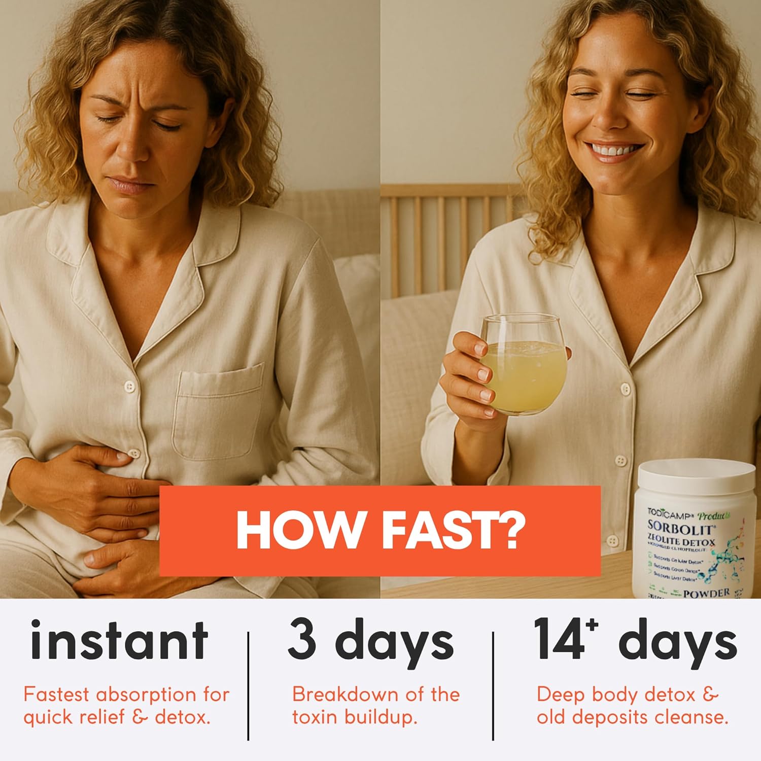 About this item CELLULAR DETOX: Clinoptilolite Zeolite Powder works as a molecular sieve. With its highest absorption capacity, zeolite powder captures and eliminates toxins and waste directly from cells, promoting thorough detoxification. This deep cellular cleansing aids in restoring cellular function, enhancing nutrient absorption, and optimizing metabolic processes. COLON DETOX: Zeolite Powder Sorbolit is an Ultra-Fine 1-2 µm Pure Zeolite Clinoptilolite powder. This extra-thin particle absorbs deposits and gas-producing toxins, supporting a healthy microbiome. It also regulates metabolism in the large and small intestines, affecting anaerobic fermentation, providing relief from chronic bloating, and supporting a more balanced digestive system. LIVER DETOX: Powder Zeolite effectively reduces the level of transaminases and liver load and stabilizes cell membranes. As a result, clinoptilolite zeolite detox powder stimulates the liver to cleanse and regenerate. Enhanced liver detoxification improves digestion, nutrient absorption, and overall metabolic health. SKIN HEALTH: Zeolite Clinoptilolite powder supports clearer, healthier skin by eliminating internal toxins. Its ability to bind toxins and other pollutants reduces the burden on the skin, which often reflects internal toxicity. Studies have shown that zeolite's detoxifying properties help reduce acne and blemishes, promoting a radiant complexion and improving skin texture and tone. LYMPHATIC DETOX: Zeolite Sorbolit detox powder also plays a crucial role in supporting lymphatic detoxification. The lymphatic system, responsible for removing waste and toxins from bodily tissues, can become overwhelmed by environmental pollutants and internal waste products. Todicamp zeolite powder aids in this process by binding to these toxins and facilitating their removal, thereby enhancing lymphatic function. See more product details,CELLULAR DETOX: Clinoptilolite Zeolite Powder works as a molecular sieve. With its highest absorption capacity, zeolite powder captures and eliminates toxins and waste directly from cells, promoting thorough detoxification. This deep cellular cleansing aids in restoring cellular function, enhancing nutrient absorption, and optimizing metabolic processes,COLON DETOX: Zeolite Powder Sorbolit is an Ultra-Fine 1-2 µm Pure Zeolite Clinoptilolite powder. This extra-thin particle absorbs deposits and gas-producing toxins, supporting a healthy microbiome. It also regulates metabolism in the large and small intestines, affecting anaerobic fermentation, providing relief from chronic bloating, and supporting a more balanced digestive system,LIVER DETOX: Powder Zeolite effectively reduces the level of transaminases and liver load and stabilizes cell membranes. As a result, clinoptilolite zeolite detox powder stimulates the liver to cleanse and regenerate. Enhanced liver detoxification improves digestion, nutrient absorption, and overall metabolic health,SKIN HEALTH: Zeolite Clinoptilolite powder supports clearer, healthier skin by eliminating internal toxins. Its ability to bind toxins and other pollutants reduces the burden on the skin, which often reflects internal toxicity. Studies have shown that zeolite's detoxifying properties help reduce acne and blemishes, promoting a radiant complexion and improving skin texture and tone,LYMPHATIC DETOX: Zeolite Sorbolit detox powder also plays a crucial role in supporting lymphatic detoxification. The lymphatic system, responsible for removing waste and toxins from bodily tissues, can become overwhelmed by environmental pollutants and internal waste products. Todicamp zeolite powder aids in this process by binding to these toxins and facilitating their removal, thereby enhancing lymphatic function