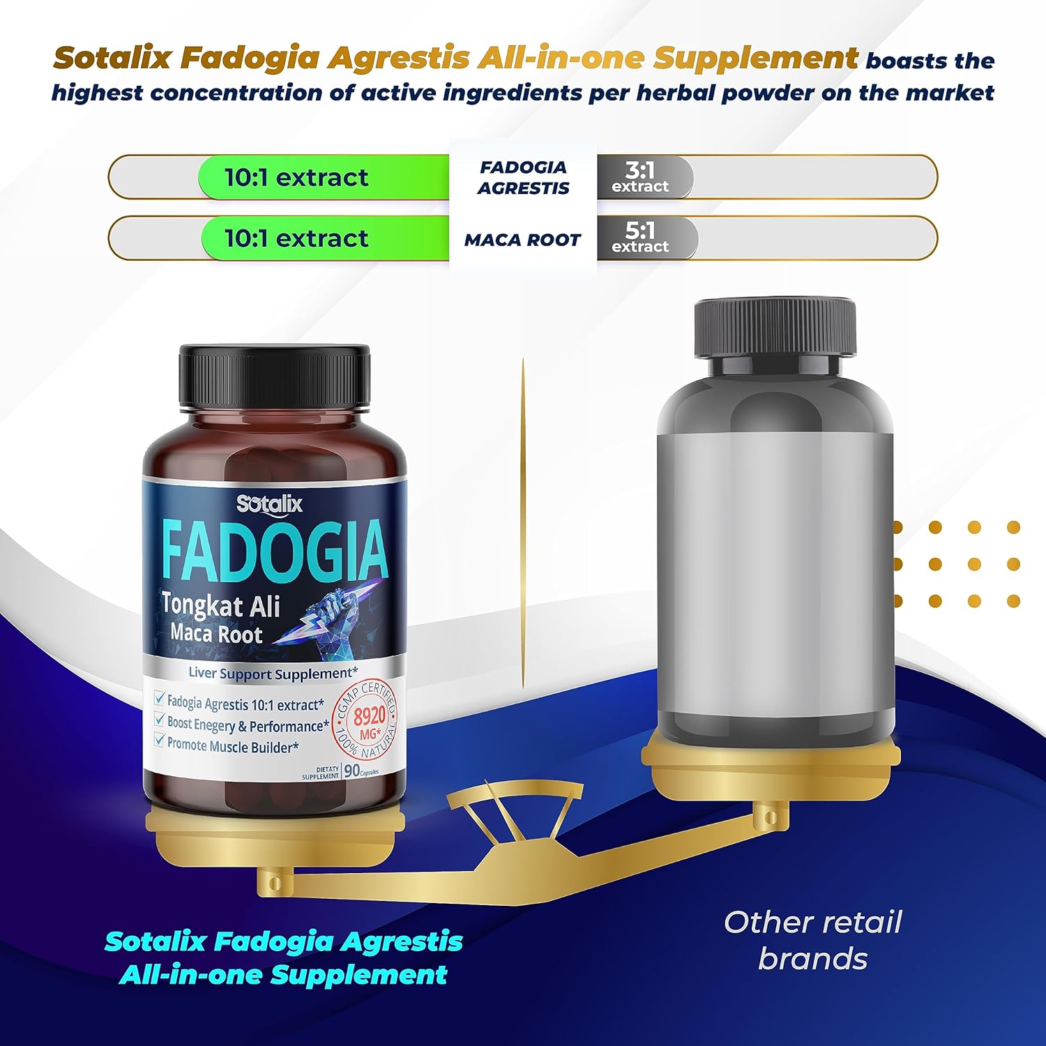SOTALIX SUPPLEMENT High Strength Fadogia Agrestis Capsules - 8920 mg Concentrated Extract Formula with Maca Root - Support Immune, Energy 3-Month Supply (90 Count (Pack of 1))