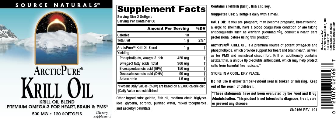 Source Naturals Arcticpure Krill Oil, Omega-3 For Health Support, 500 Mg - 120 Softgels