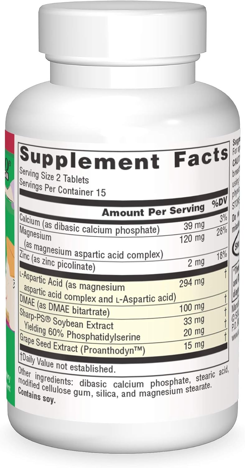 Source Naturals Attentive Child - Healthy Cognitive Nutrients For Active Children - Improved Focus & Attention With Dmae, Magnesium, Zinc & Grape Seed Extract - 30 Tablets