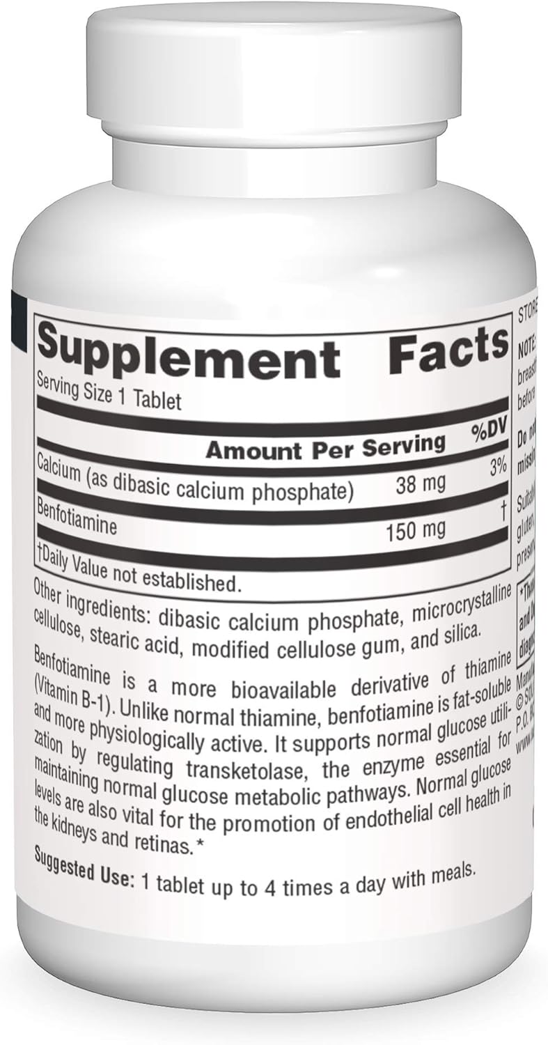 Source Naturals Benfotiamine 150Mg Fat Soluble Vitamin B-1 (Thiamine) Supplement Supports Circulation, Nervous System, Metabolism, Healthy Blood Sugar Levels & Metabolism - - 60 Tablets