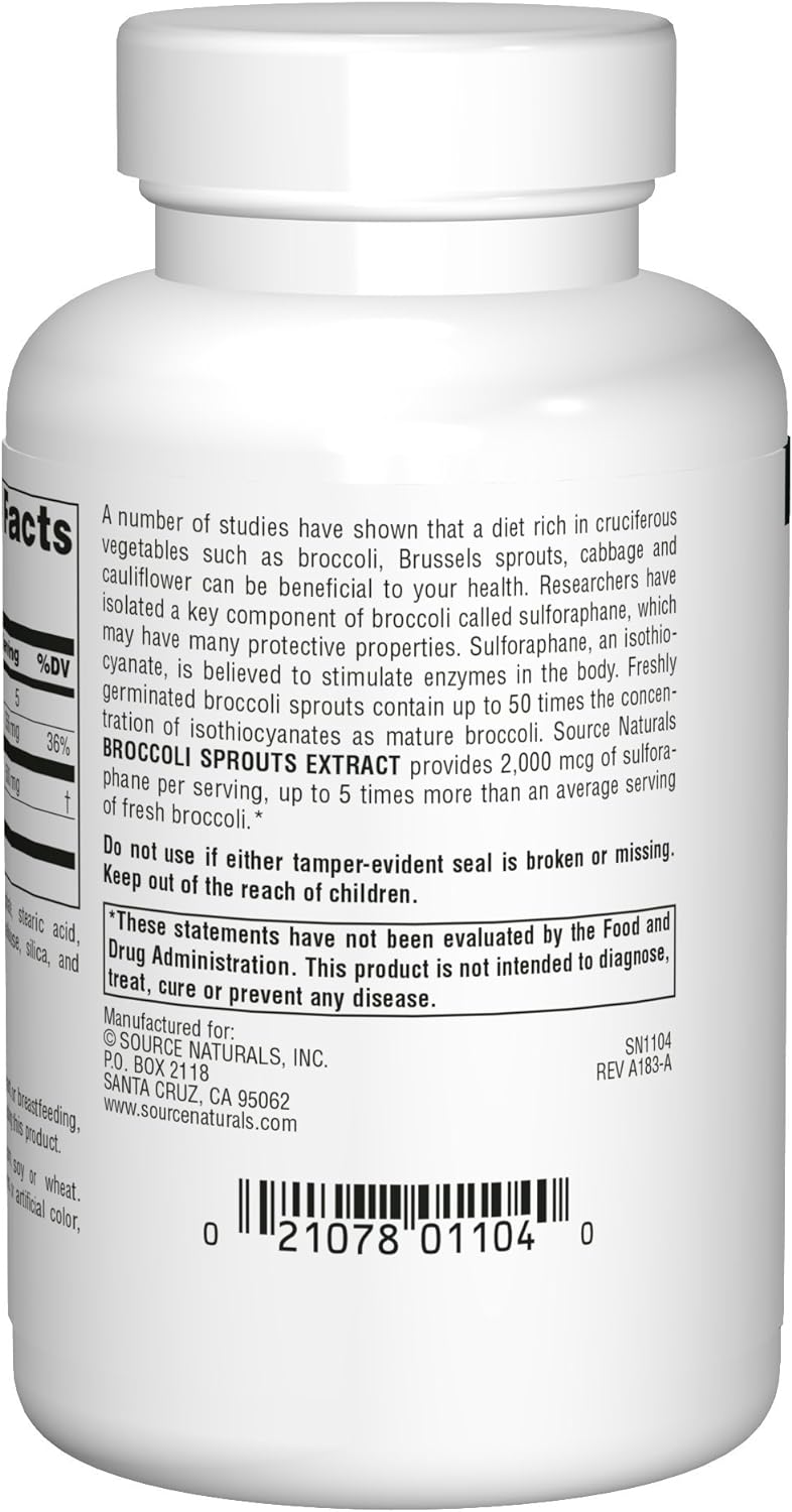 Source Naturals Broccoli Sprouts Extract, Provides 2,000 Mcg Of Sulforaphane Per Serving, 250 Mg - 60 Tablets
