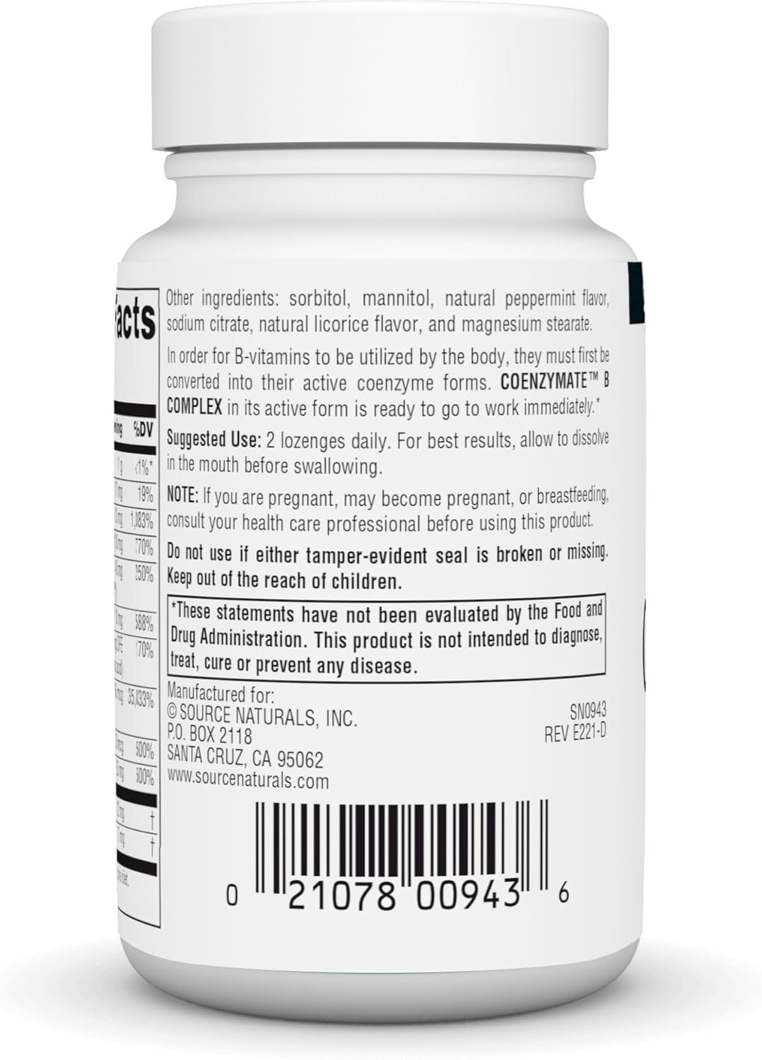 Source Naturals Coenzymate B Complex, Peppermint Flavor That Melts In Mouth - B Vitamins - 60 Lozenges