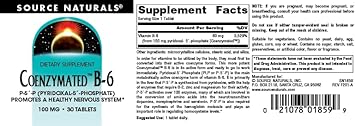 Source Naturals Coenzymated B-6, P-5´-P (Pyridoxal-5´-Phosphate) Promotes A Healthy Nervous System* 100 Mg - 30 Tablets