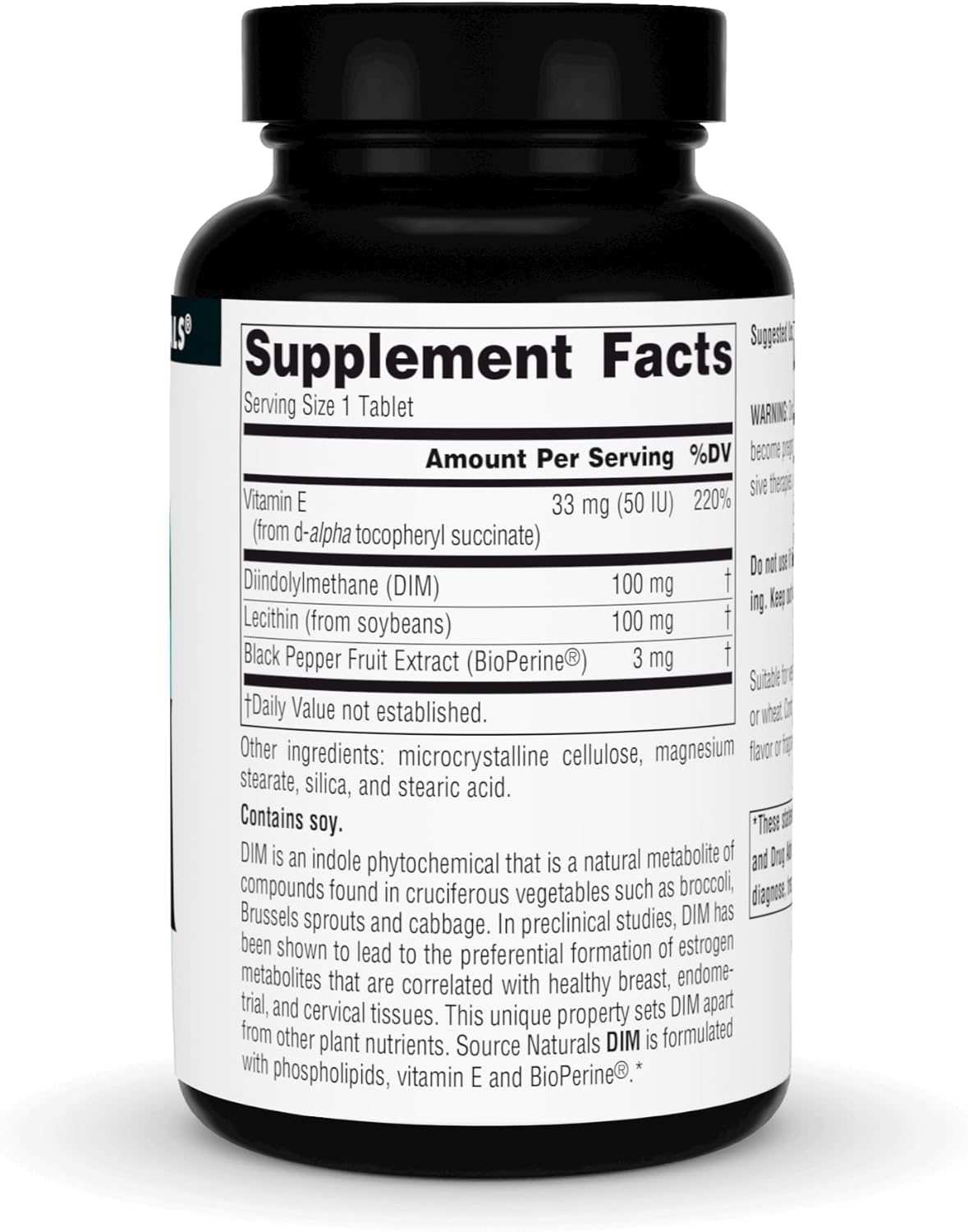 Source Naturals Dim, Diindolylmethane 100Mg With Bioperine, Vitamin E & More - 120 Tablets