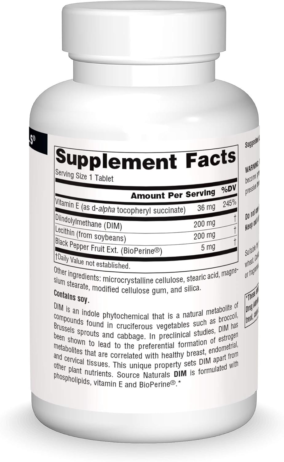 Source Naturals Dim, Diindolylmethane 200Mg With Bioperine, Vitamin E & More - 120 Tablets