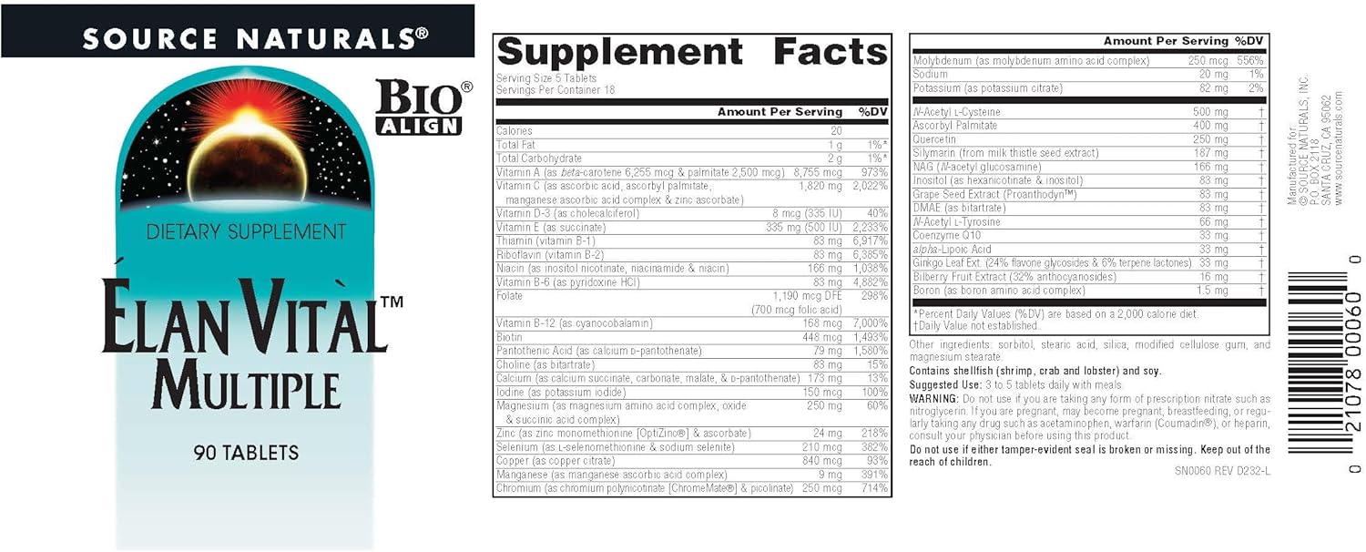 Source Naturals Elan Vital Multiple, For Multiple Body System Support* - 90 Tablets