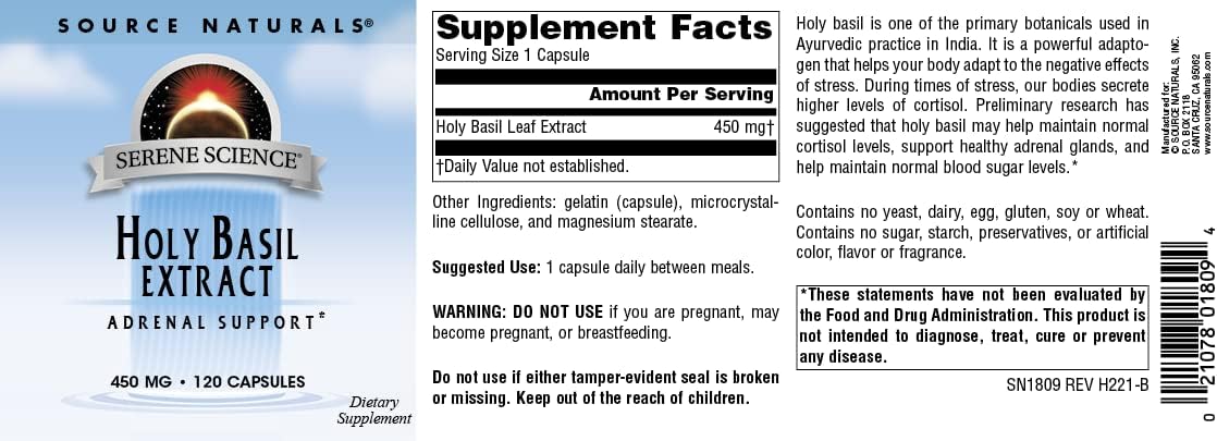 Source Naturals Holy Basil Extract, Adrenal Support* 450Mg -120 Capsules
