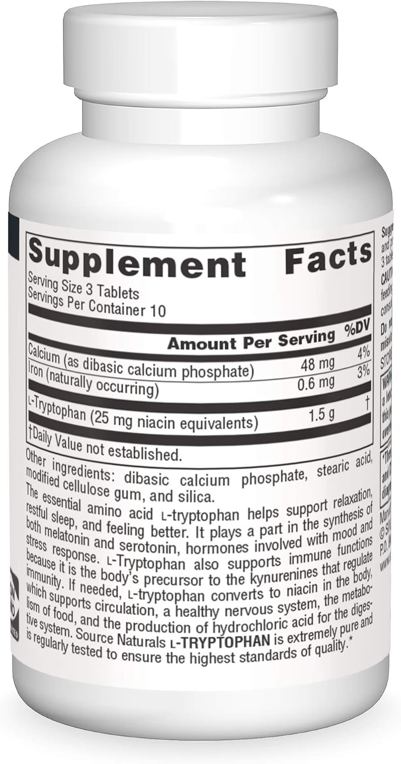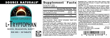 Source Naturals L-Tryptophan, For Mood, Relaxation, And Sleep*, 500Mg - 30 Tablets