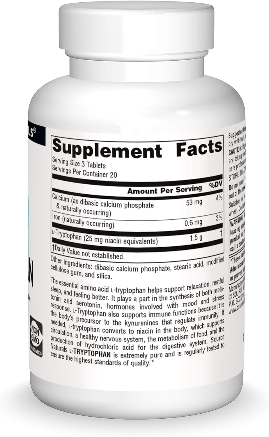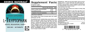 Source Naturals L-Tryptophan, For Mood, Relaxation, And Sleep*, 500Mg - 60 Tablets