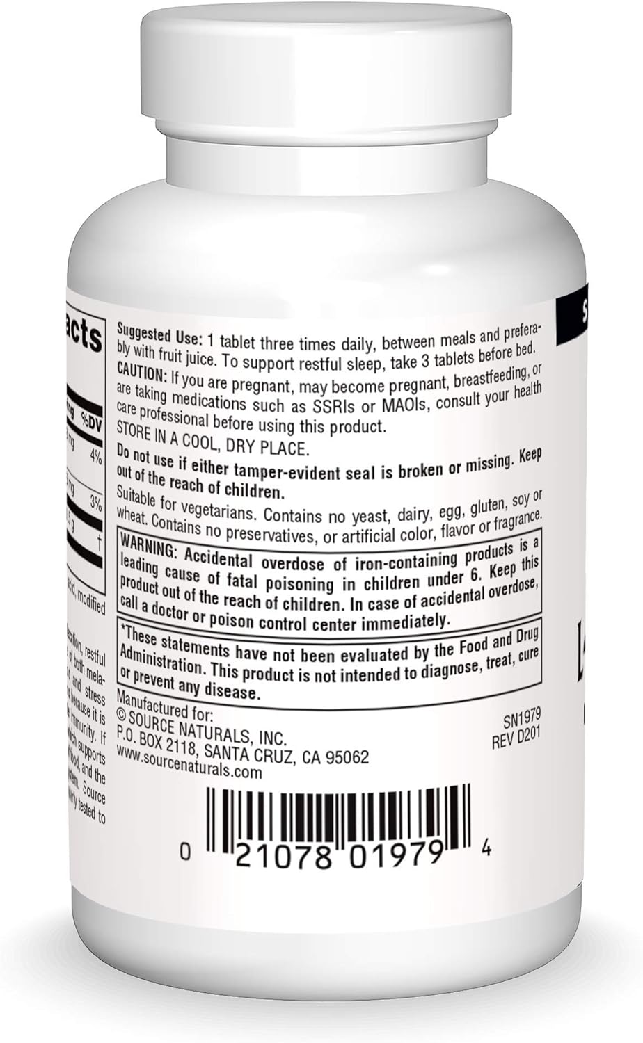 Suggested Use: 1 tablet three times daily, between meals and preferably with fruit juice. To support restful sleep, take 3 tablets before bed