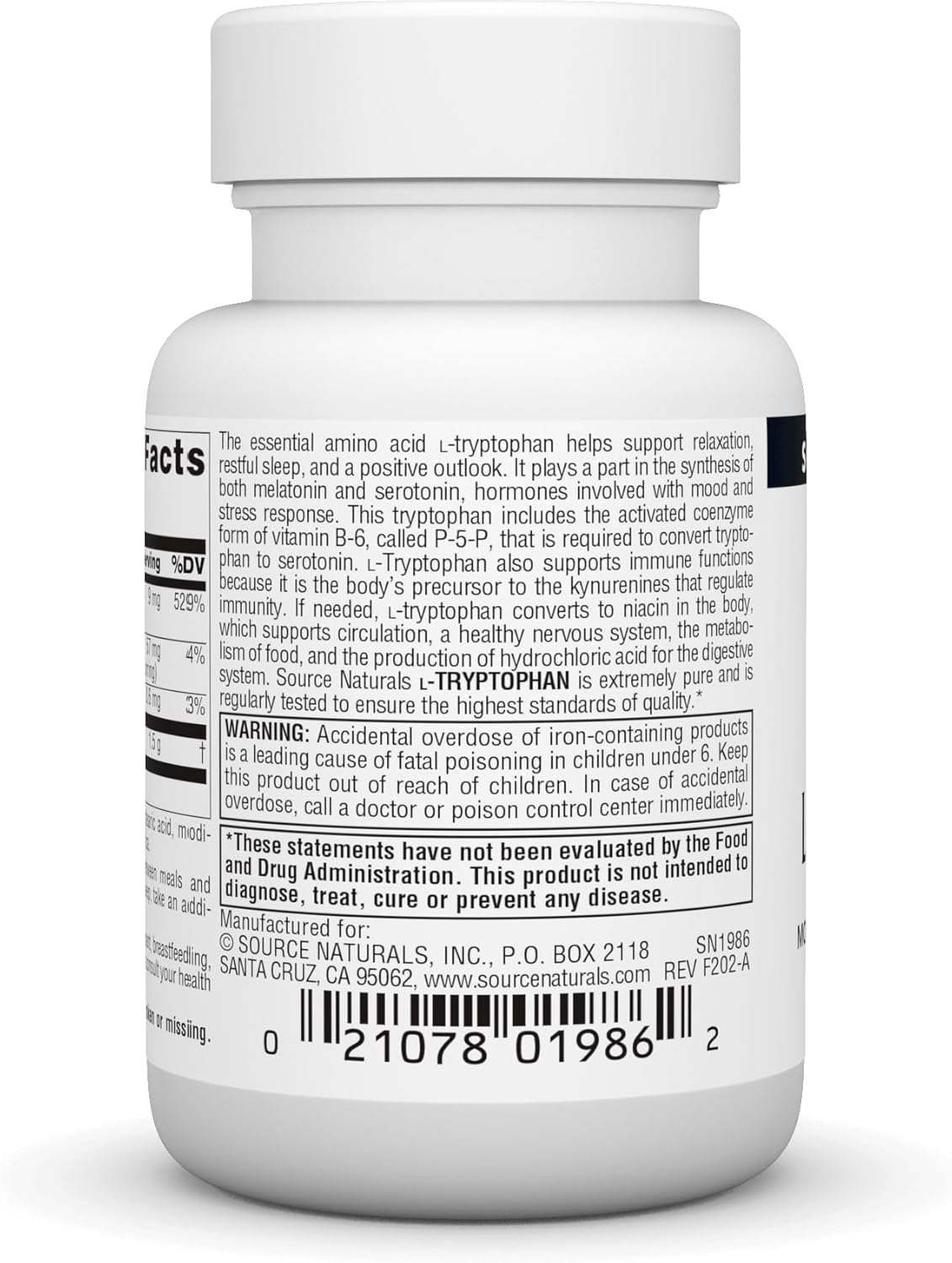 Source Naturals L-Tryptophan With Coenzyme B-6 500 Mg - 30 Tablets