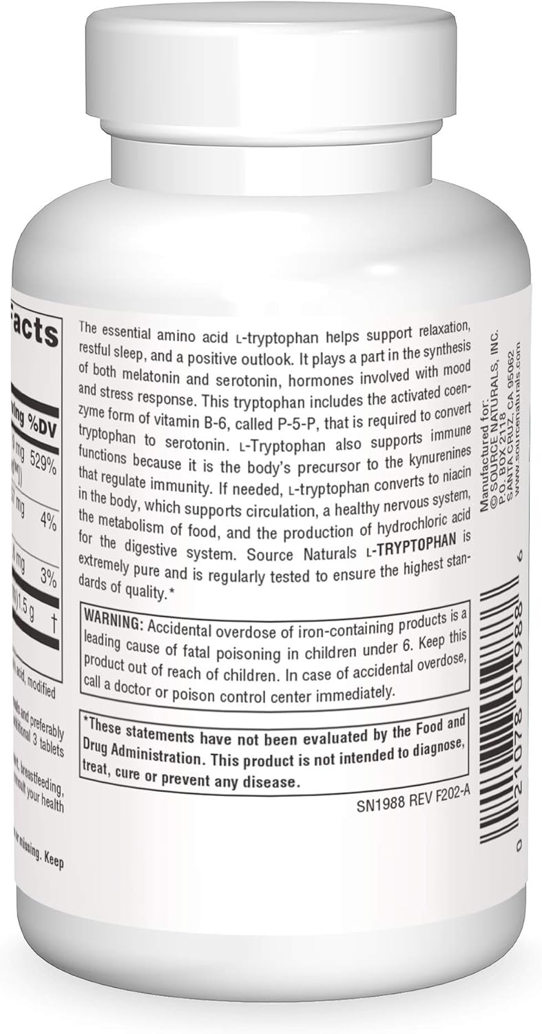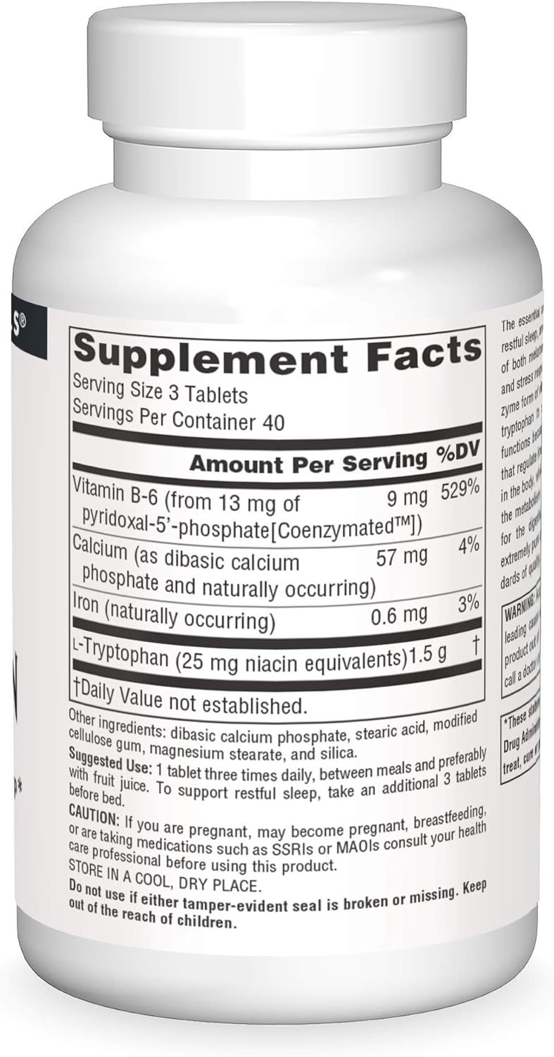 Source Naturals L-Tryptophan With Coenzyme B-6, 500Mg - 120 Tablets