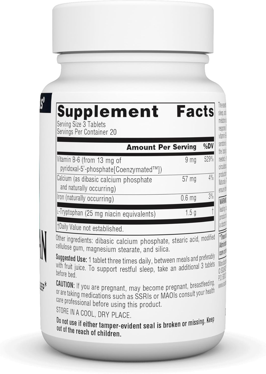 Source Naturals L-Tryptophan With Coenzyme B-6 500Mg - 60 Tablets