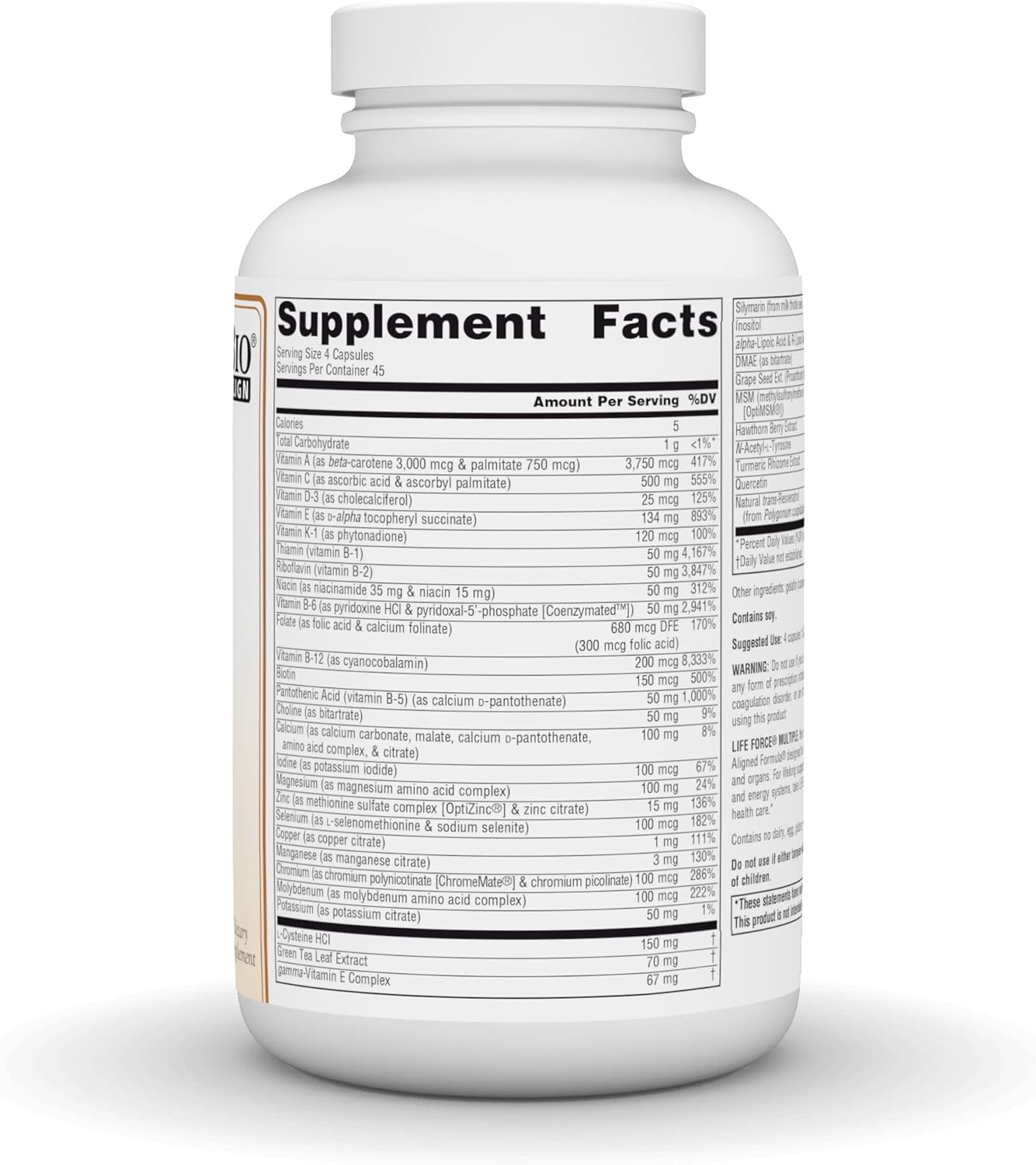 Source Naturals Life Force Multiple, Energy Activator* Iron Free, Daily Multivitamin High Potency Essential Vitamins, Minerals, Antioxidants & Nutrients - 180 Capsules