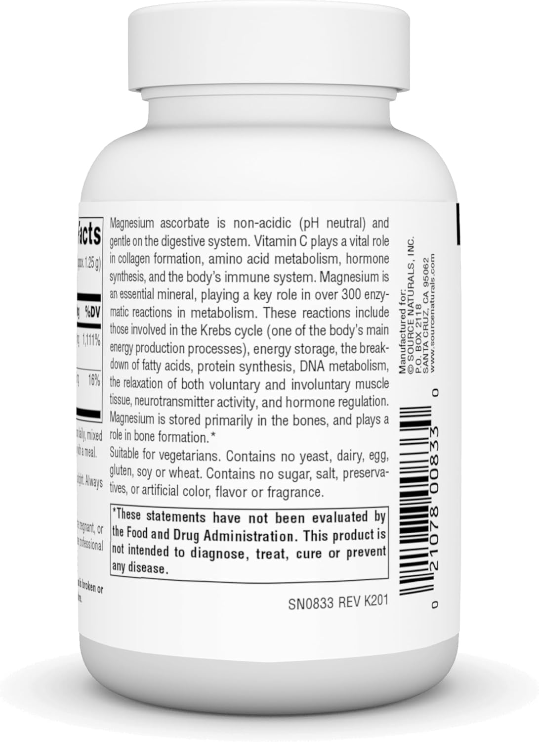 Source Naturals Magnesium Ascorbate Crystals - Non-Acidic Vitamin C - 4 Ounce Powder