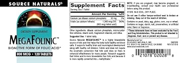 Source Naturals Megafolinic, Bioactive Form Of Folic Acid, 800 Mcg - 120 Tablets