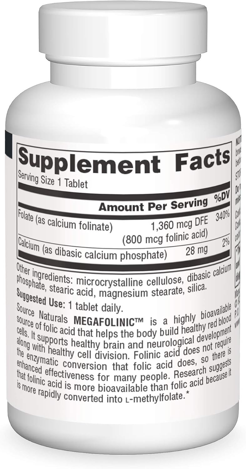 Source Naturals Megafolinic Is A Highly Bioavailable Source Of Folic Acid That Helps The Body Build Healthy Red Blood Cells. It Supports Healthy Brain And Neurological Development Along With Healthy Cell Division