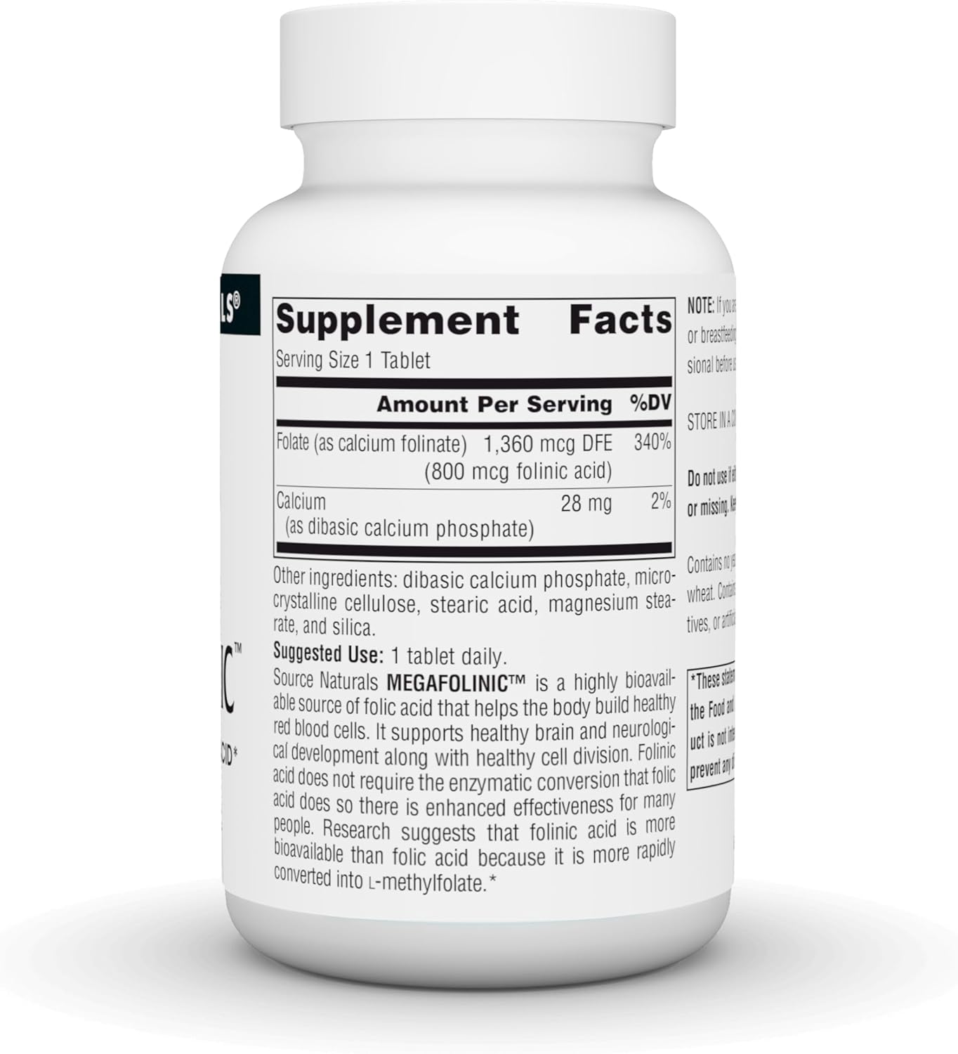 Source Naturals Megafolinic Is A Highly Bioavailable Source Of Folic Acid That Helps The Body Build Healthy Red Blood Cells. It Supports Healthy Brain And Neurological Development Along With Healthy Cell Division