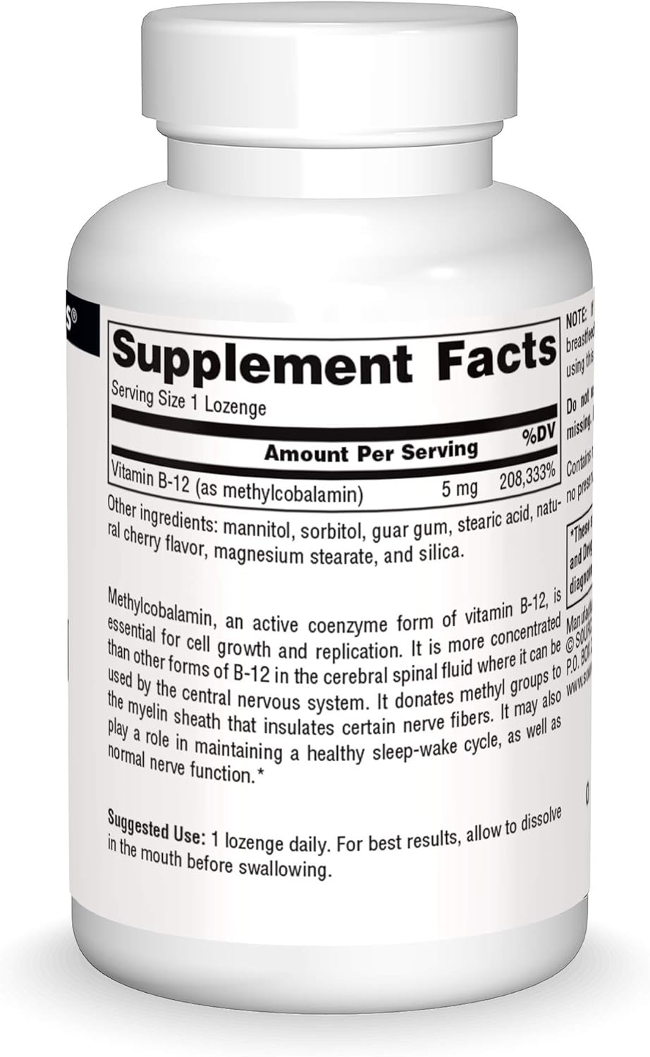 Source Naturals Methylcobalamin Vitamin B-12 5Mg Cherry Flavored - 30 Lozenges