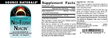 Source Naturals No-Flush Niacin, B-3 For Energy & Cardiovascular Health* 500 Mg - 30 Tablets