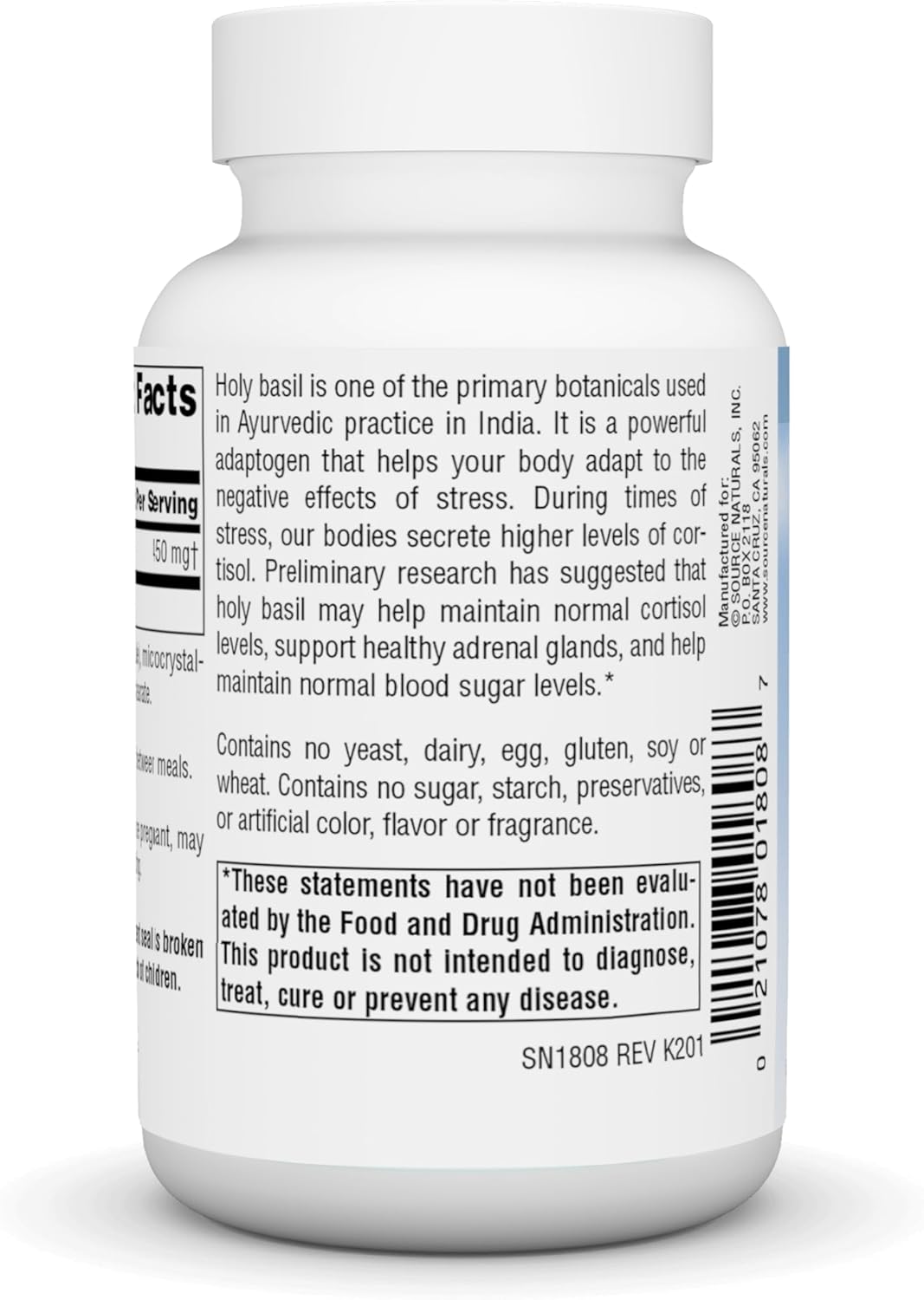 Source Naturals Serene Science Holy Basil Extract, Adrenal Support* 450 Mg - 60 Capsules
