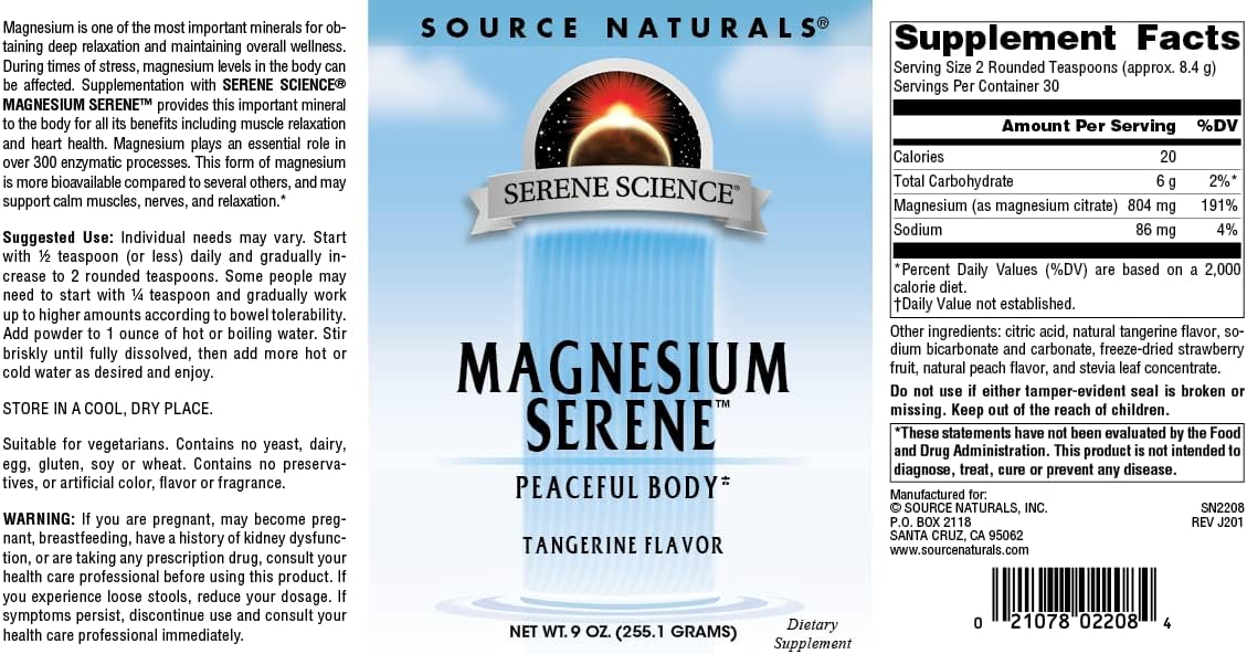 Source Naturals Serene Science Magnesium Serene, Peaceful Body*, Tangerine Flavored - 9 Ounce Powder