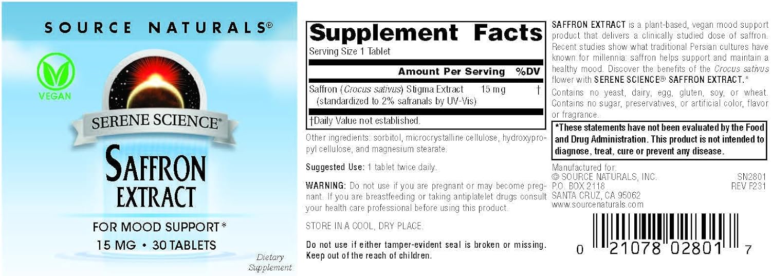 Source Naturals Serene Science Saffron Extract, For Mood Support* - 30 Tablets