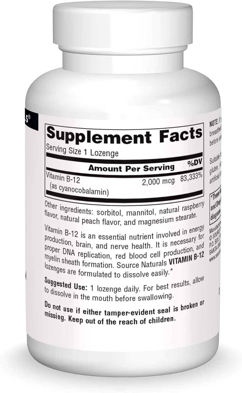 Source Naturals Vitamin B-12, 2000 Mcg Supports Energy Production - 100 Lozenges