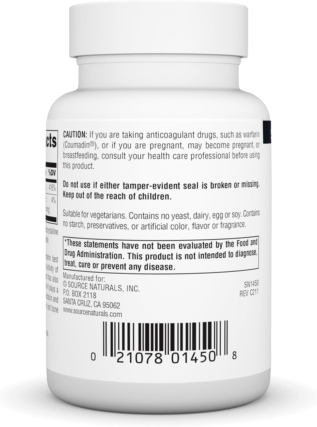 Source Naturals Vitamin K, 500Mcg, Tablets, 200 Tablets