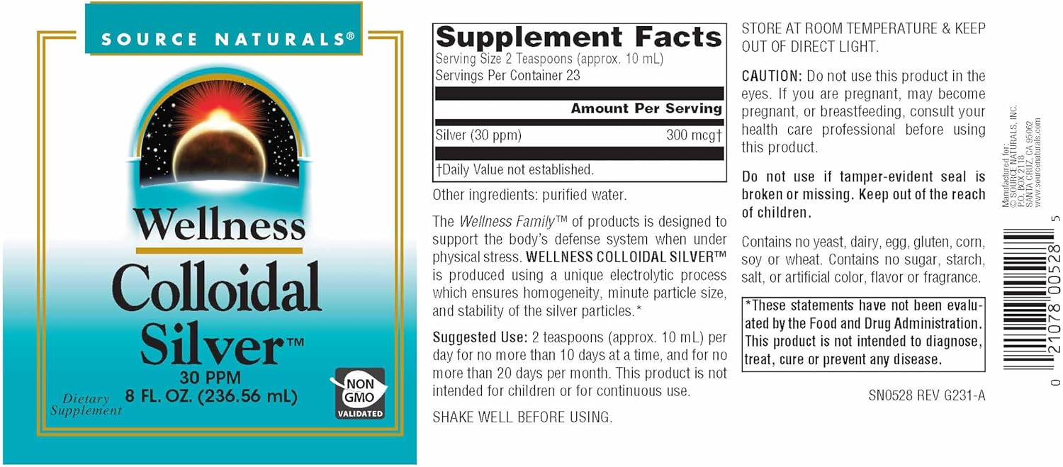 Source Naturals Wellness Colloidal Silver 30 Ppm, Supports Physical Well Being* - 8 Fluid Oz