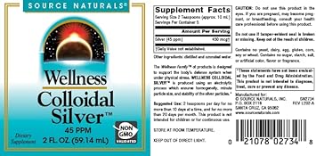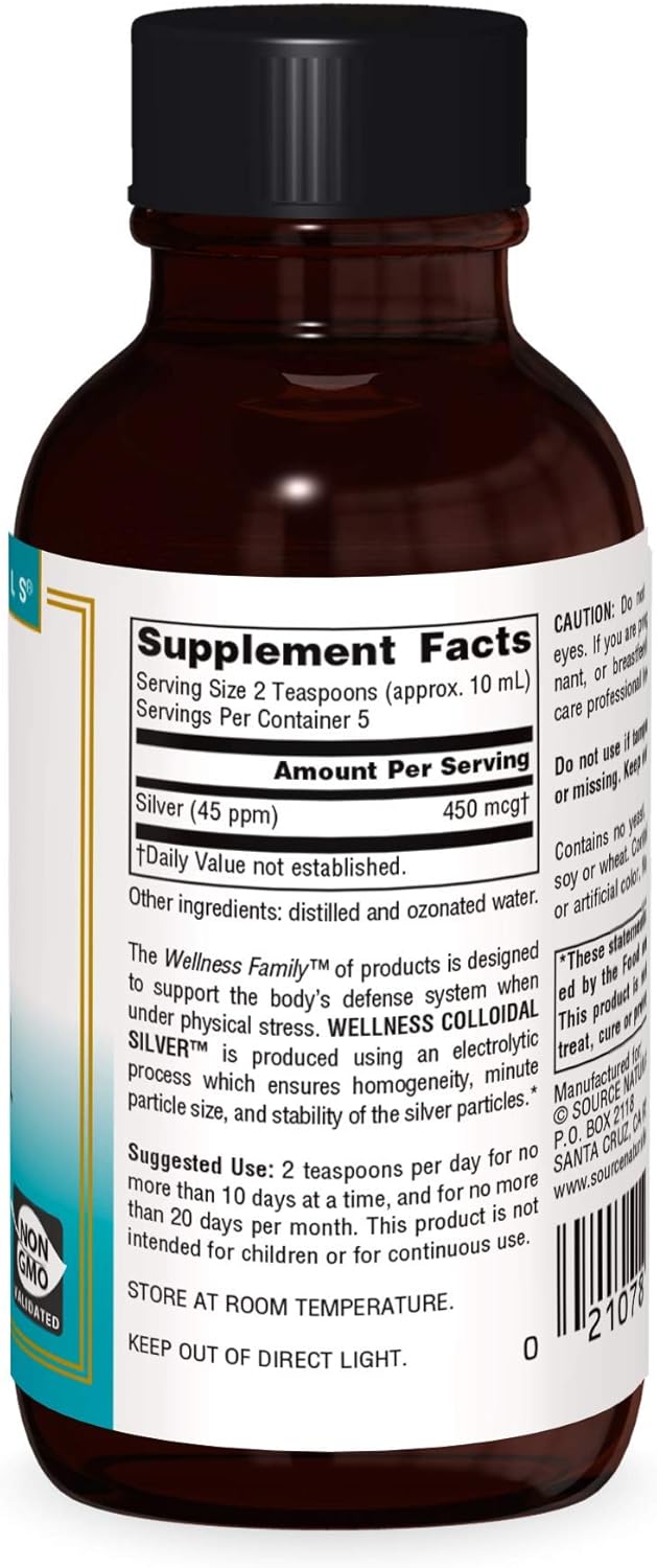 Source Naturals Wellness Colloidal Silver 45 Ppm, Supports Physical Well Being* - 2 Fluid Oz