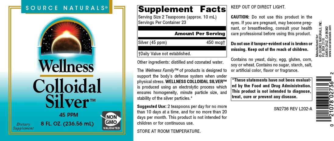 Source Naturals Wellness Colloidal Silver 45 Ppm, Supports Physical Well Being* - 8 Fluid Oz