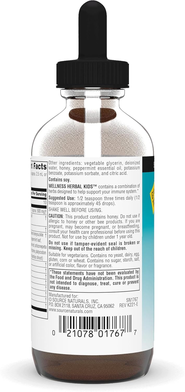 Source Naturals Wellness Herbal Kids Liquid Formula - For Immune System Support - 4 Fluid Oz