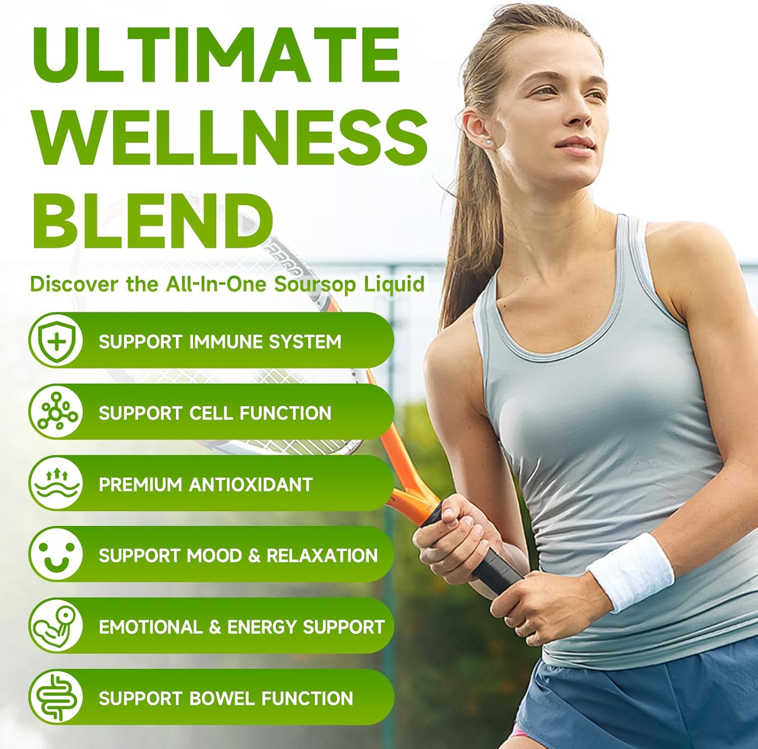 About this item Powerful Immunity Booster: Soursop extract (Graviola) contains nature's powerful nourishment, rich in vitamin C, B1, B2, B17, together with rich dietary fiber, not only promotes healthy intestinal peristalsis, but also builds up a solid defense for your immune system. Experience the comprehensive care provided by soursop drops, which activates the cellular self-repair and regeneration ability, giving you a healthy vitality from the inside out. Nature's Science Fusion: Presenting our soursop bitters organic liquid essence, where each drop harmoniously fuses nature with precision science. Each 2ml serving delivers 300mg soursop fruit extract and 1500mg soursop leaf extract, meticulously extracted for optimal bioavailability, coupled with 80mg Vitamin C (89% DV), reinforcing immunity and safeguarding wellness. Easy-to-Take, Great Taste: Our soursop bitters liquid boasts enhanced bioavailability, surpassing traditional forms like tablets & capsules. Simply shake and consume 2ml post-meal for optimal nutrient uptake. With a zesty fusion of sweet and bitter flavors, they seamlessly integrate into your daily routine. Should the taste not suit your palate, effortlessly mix them into water, tea, or meal recipes for a convenient health boost. Purely Wholesome Choice: Say yes to effectiveness minus the additives! Our organic soursop bitters liquid champions purity, free from artificial colors and common allergens. Catering to gluten-free, vegan lifestyles, and health enthusiasts alike, they offer a snack solution that's as wholesome as it is delicious. Embrace a green future where each sour sop bitters drops promises freshness and pure nutrition. Quality You Can Trust: Discover the benefits of soursop liquid drops, thoughtfully formulated for your wellness. Backed by GMP standards and meticulous third-party testing, our organic soursop supplements offerings guarantee superior quality. Monitor freshness effortlessly through the bottom-date stamp. Your contentment fuels our mission – we're here if you need assistance. See more product details,Powerful Immunity Booster: Soursop extract (Graviola) contains nature's powerful nourishment, rich in vitamin C, B1, B2, B17, together with rich dietary fiber, not only promotes healthy intestinal peristalsis, but also builds up a solid defense for your immune system. Experience the comprehensive care provided by soursop drops, which activates the cellular self-repair and regeneration ability, giving you a healthy vitality from the inside out,Nature's Science Fusion: Presenting our soursop bitters organic liquid essence, where each drop harmoniously fuses nature with precision science. Each 2ml serving delivers 300mg soursop fruit extract and 1500mg soursop leaf extract, meticulously extracted for optimal bioavailability, coupled with 80mg Vitamin C (89% DV), reinforcing immunity and safeguarding wellness,Easy-to-Take, Great Taste: Our soursop bitters liquid boasts enhanced bioavailability, surpassing traditional forms like tablets & capsules. Simply shake and consume 2ml post-meal for optimal nutrient uptake. With a zesty fusion of sweet and bitter flavors, they seamlessly integrate into your daily routine. Should the taste not suit your palate, effortlessly mix them into water, tea, or meal recipes for a convenient health boost,Purely Wholesome Choice: Say yes to effectiveness minus the additives! Our organic soursop bitters liquid champions purity, free from artificial colors and common allergens. Catering to gluten-free, vegan lifestyles, and health enthusiasts alike, they offer a snack solution that's as wholesome as it is delicious. Embrace a green future where each sour sop bitters drops promises freshness and pure nutrition,Quality You Can Trust: Discover the benefits of soursop liquid drops, thoughtfully formulated for your wellness. Backed by GMP standards and meticulous third-party testing, our organic soursop supplements offerings guarantee superior quality. Monitor freshness effortlessly through the bottom-date stamp. Your contentment fuels our mission – we're here if you need assistance