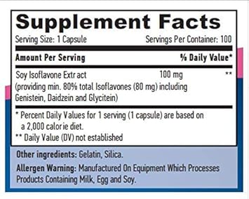 Soya Isoflavones 80% Extract X 100 Capsules Non-Gmo Supports Hormonal Health, Potent One-A-Day Formula Supplement