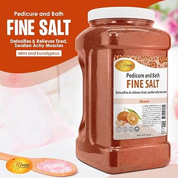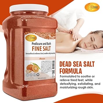 About this item Smoothing, relaxing, and hydrating: The perfect additive for whirlpool foot baths, our Fine Bath Salt was formulated to sooth and relieve tired and overworked while detoxifying and moisturizing Dead sea salt and oils: Made with Dead Sea Salt and moisturizing oils, Dead Sea Salt is, as opposed to Epsom Salt, is a legitimate salt consisted in only 12-18% sodium chloride and rich in minerals and antioxidants. Also, great to be used as an exfoliator, add it to an oil or balm and exfoliate rough dry skin away. Lemon and Lime both produce a fresh, citrus scent that creates a clean and refreshing atmosphere. Both are full of powerful antioxidants like Vitamin C, that rejuvenate and protect your skin. Lemon & lime extract help cleanse pores of old, dead skin cells for a smooth and fresh-feeling pedicure. Spa Redi - Pedicure and bath fine salt is made without: Our product is Paraben-Free, Sulfate-Free, Alcohol-Free, Silicone-Free, and Cruelty-Free, we never test on animals. Proudly made in the USA: All our products are made in the USA and specially made with the highest quality ingredients. We have had the privilege of globally participating in the personal care industry since 1987. Meticulously crafted in the USA since 1987 for family-friendly and all-age use Our diverse range of products includes hair care, skin care, foot care, and salon & spa essentials, designed for gentle and effective personal care across all ages; ideal for everyday family beauty and relaxation routines; made with quality ingredients ensuring safe use for individuals of all ages See more product details,Smoothing, relaxing, and hydrating: The perfect additive for whirlpool foot baths, our Fine Bath Salt was formulated to sooth and relieve tired and overworked while detoxifying and moisturizing,Dead sea salt and oils: Made with Dead Sea Salt and moisturizing oils, Dead Sea Salt is, as opposed to Epsom Salt, is a legitimate salt consisted in only 12-18% sodium chloride and rich in minerals and antioxidants. Also, great to be used as an exfoliator, add it to an oil or balm and exfoliate rough dry skin away,Lemon and Lime both produce a fresh, citrus scent that creates a clean and refreshing atmosphere. Both are full of powerful antioxidants like Vitamin C, that rejuvenate and protect your skin. Lemon & lime extract help cleanse pores of old, dead skin cells for a smooth and fresh-feeling pedicure,Spa Redi - Pedicure and bath fine salt is made without: Our product is Paraben-Free, Sulfate-Free, Alcohol-Free, Silicone-Free, and Cruelty-Free, we never test on animals,Proudly made in the USA: All our products are made in the USA and specially made with the highest quality ingredients. We have had the privilege of globally participating in the personal care industry since 1987,Meticulously crafted in the USA since 1987 for family-friendly and all-age use,Our diverse range of products includes hair care, skin care, foot care, and salon & spa essentials, designed for gentle and effective personal care across all ages; ideal for everyday family beauty and relaxation routines; made with quality ingredients ensuring safe use for individuals of all ages